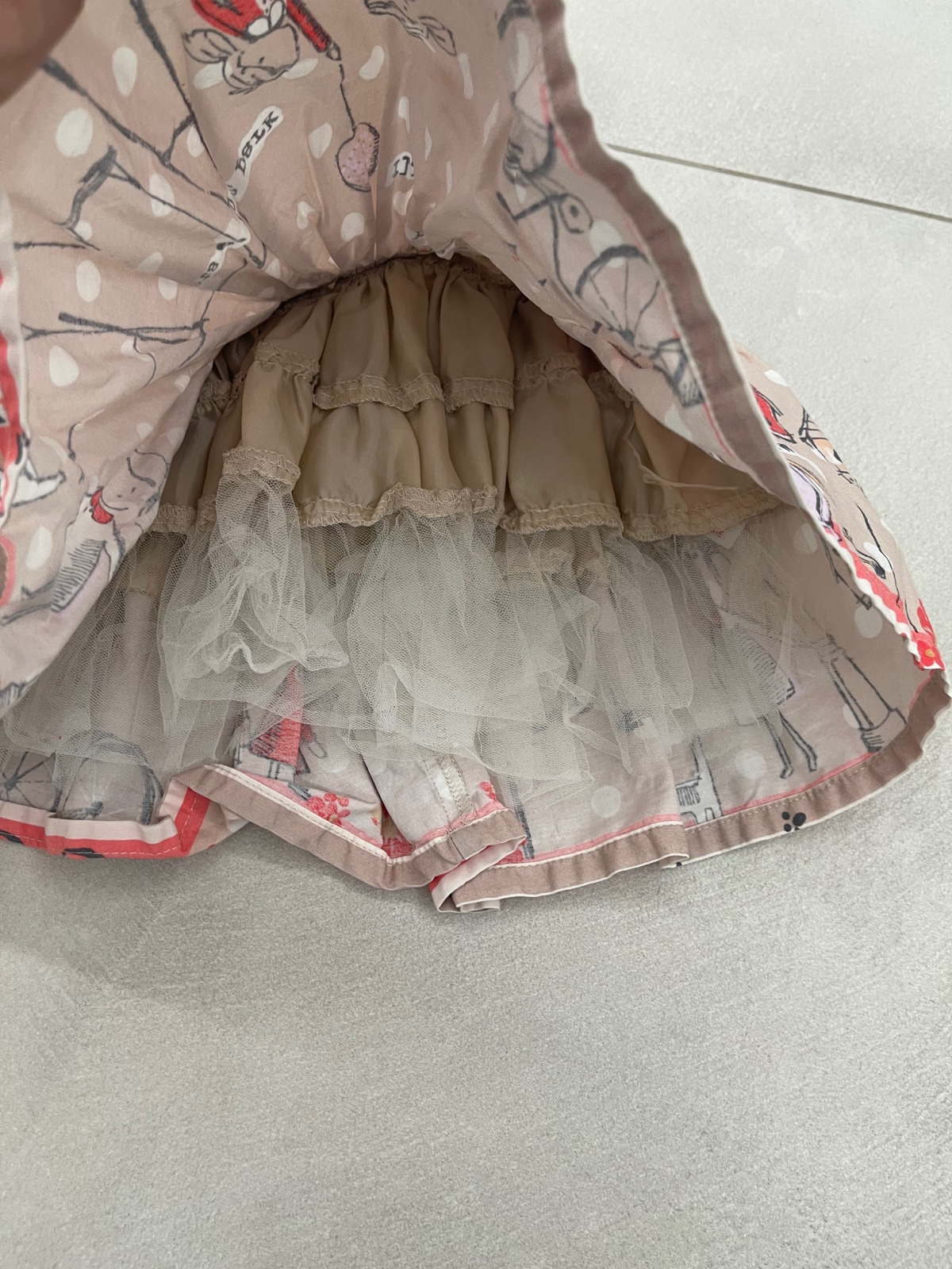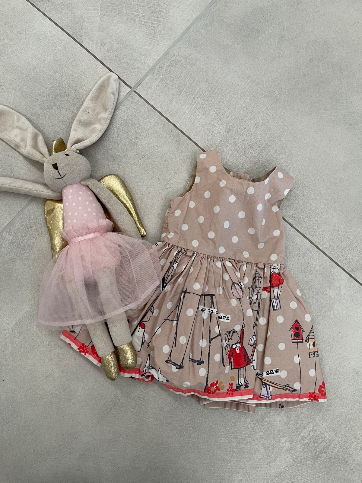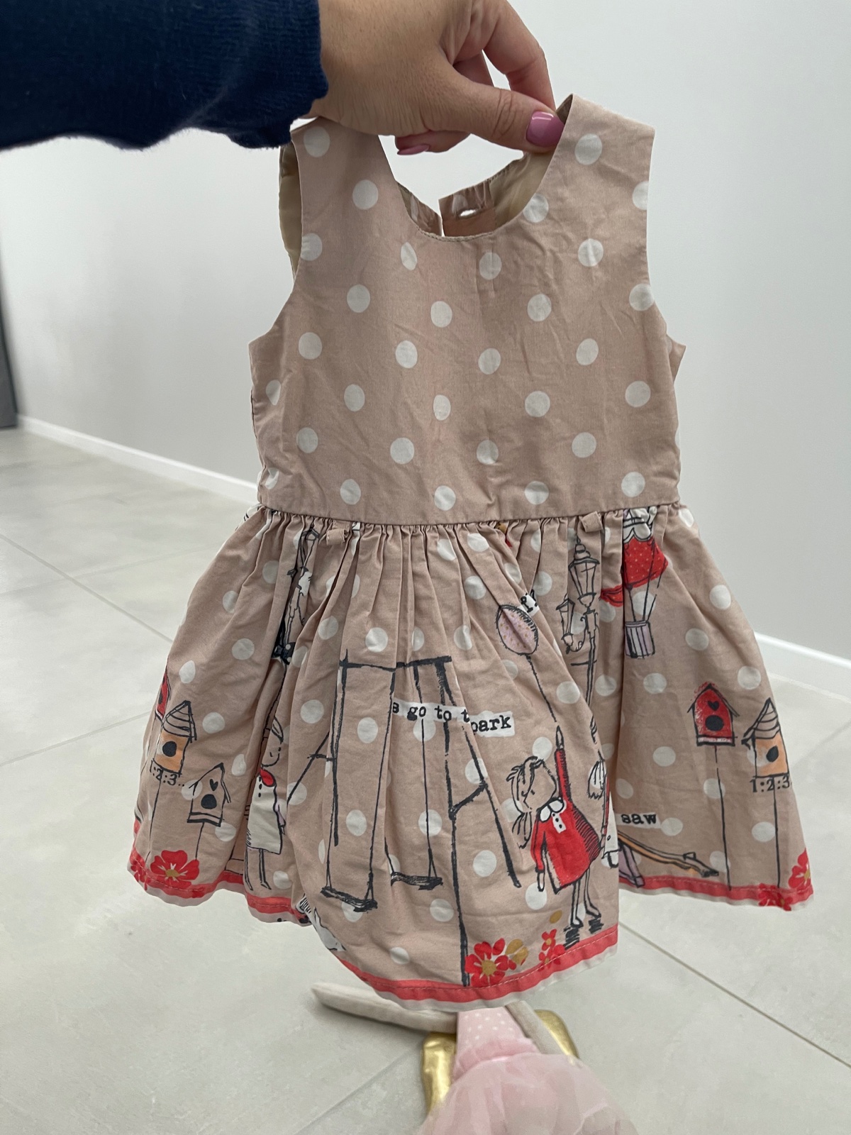 Nadherne satocky s bodkami vo vybornom stave. ROZMERY: celkova dlzka od pleca: 45cm, dlzka od pleca po spodny okraj stuhy na pase: 18cm, sirka pod pazuskami: 24,5cm