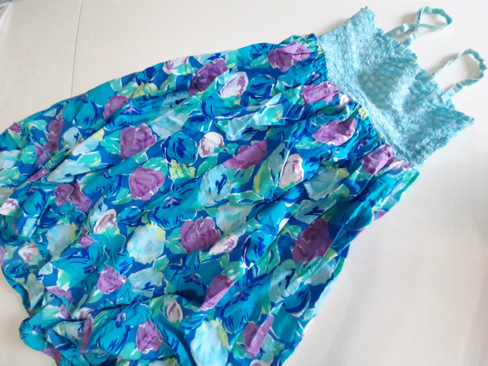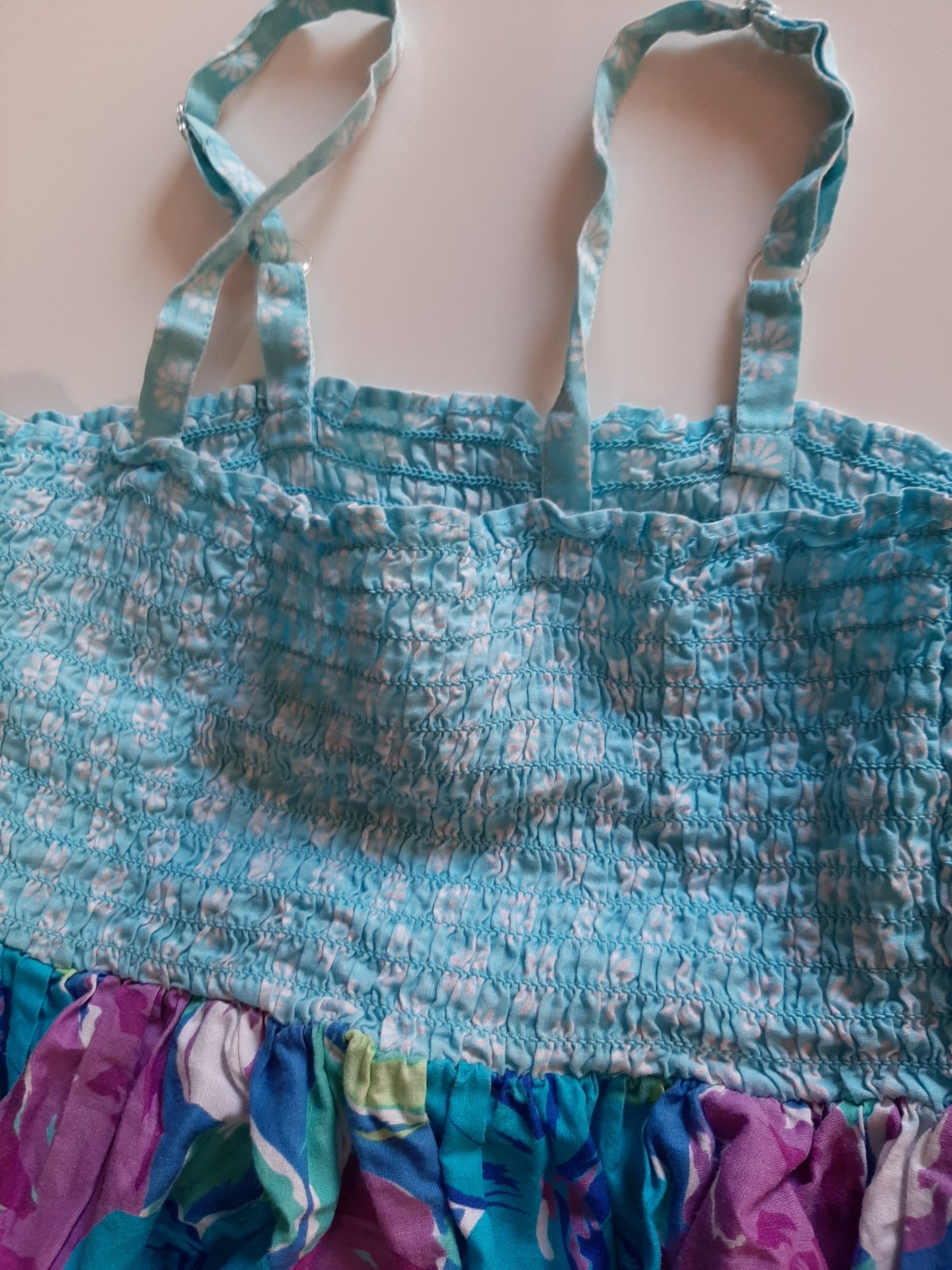 Dlhé šaty na ramienka, v páse na zaviazané. Ľahký bavlnený materiál, bez poškodenia, veľmi málo nosené. Dĺžka 109cm.