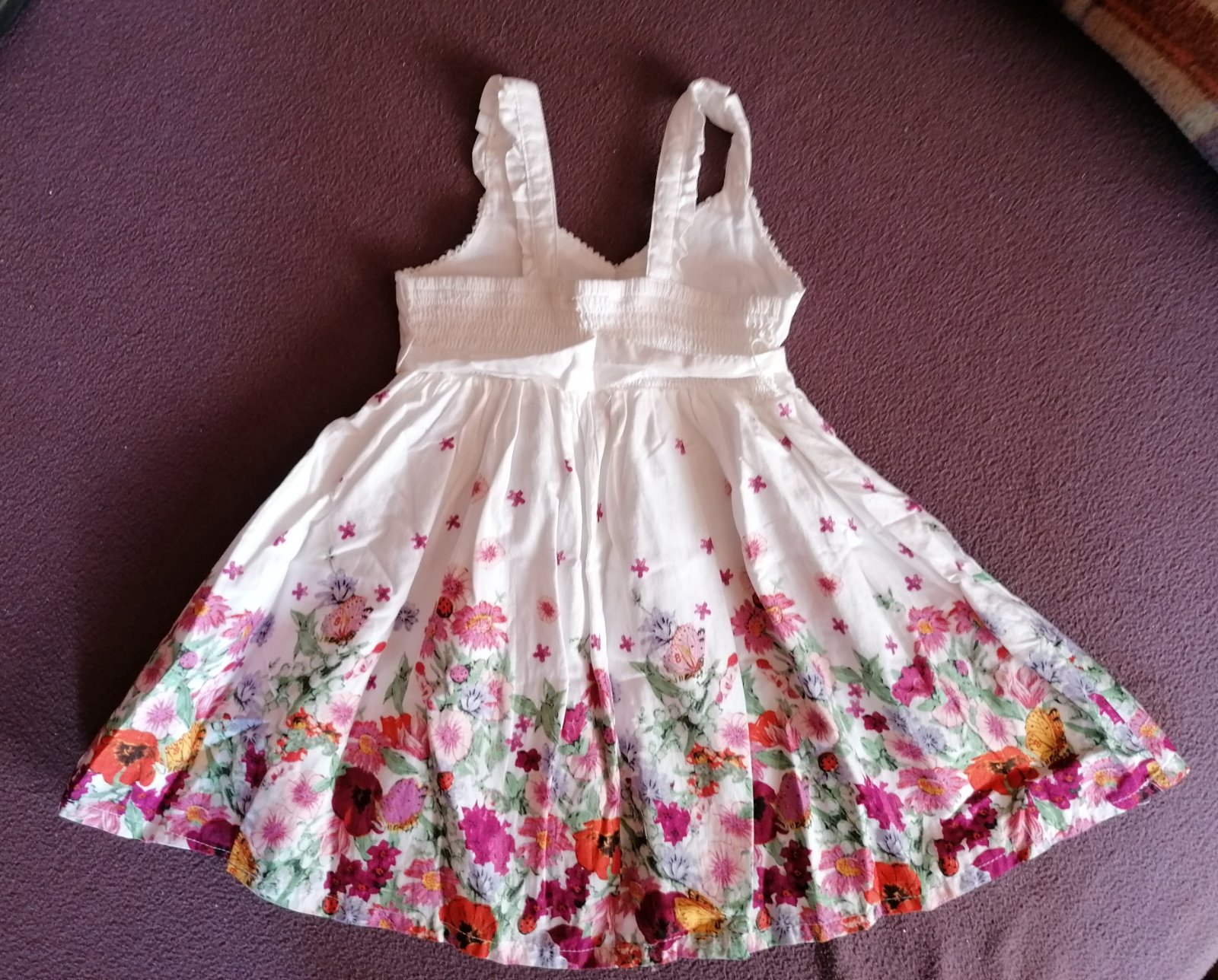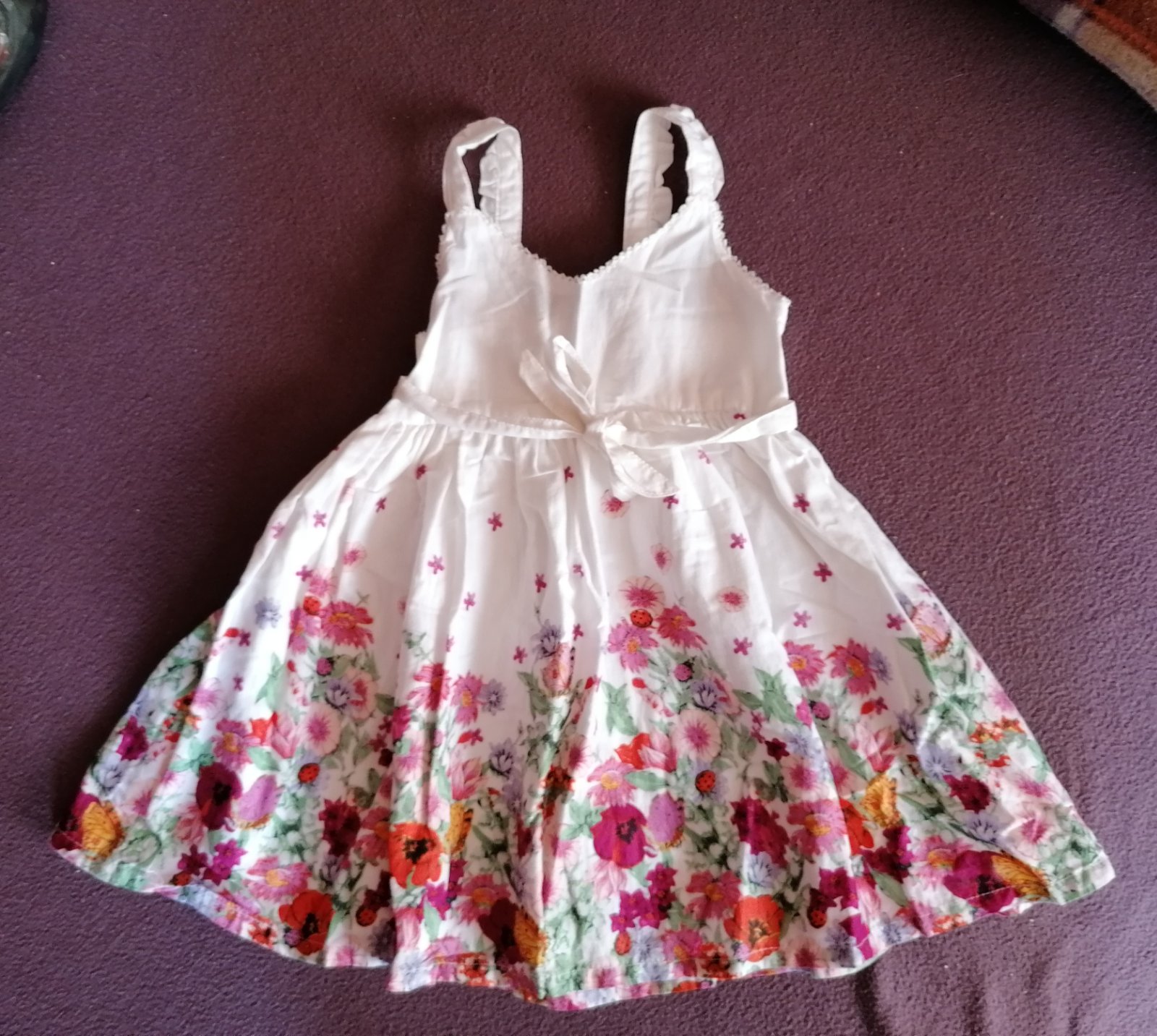 Biele plisované šaty H&M s ružovými kvietkami, podšité, veľkosť 92, málo nosené, top stav, dlzka od ramena 49 cm, sirka pod rukavom 29 cm