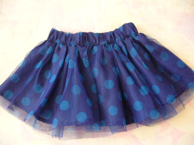 Tmavo modra TUTU suknicka. Vrchny tyl je so svetlejsimi gulickami. Pas v klude meria 21x2, napne sa na 26x2. Dlzka sukne 21cm.Nema ziadne poskodenie