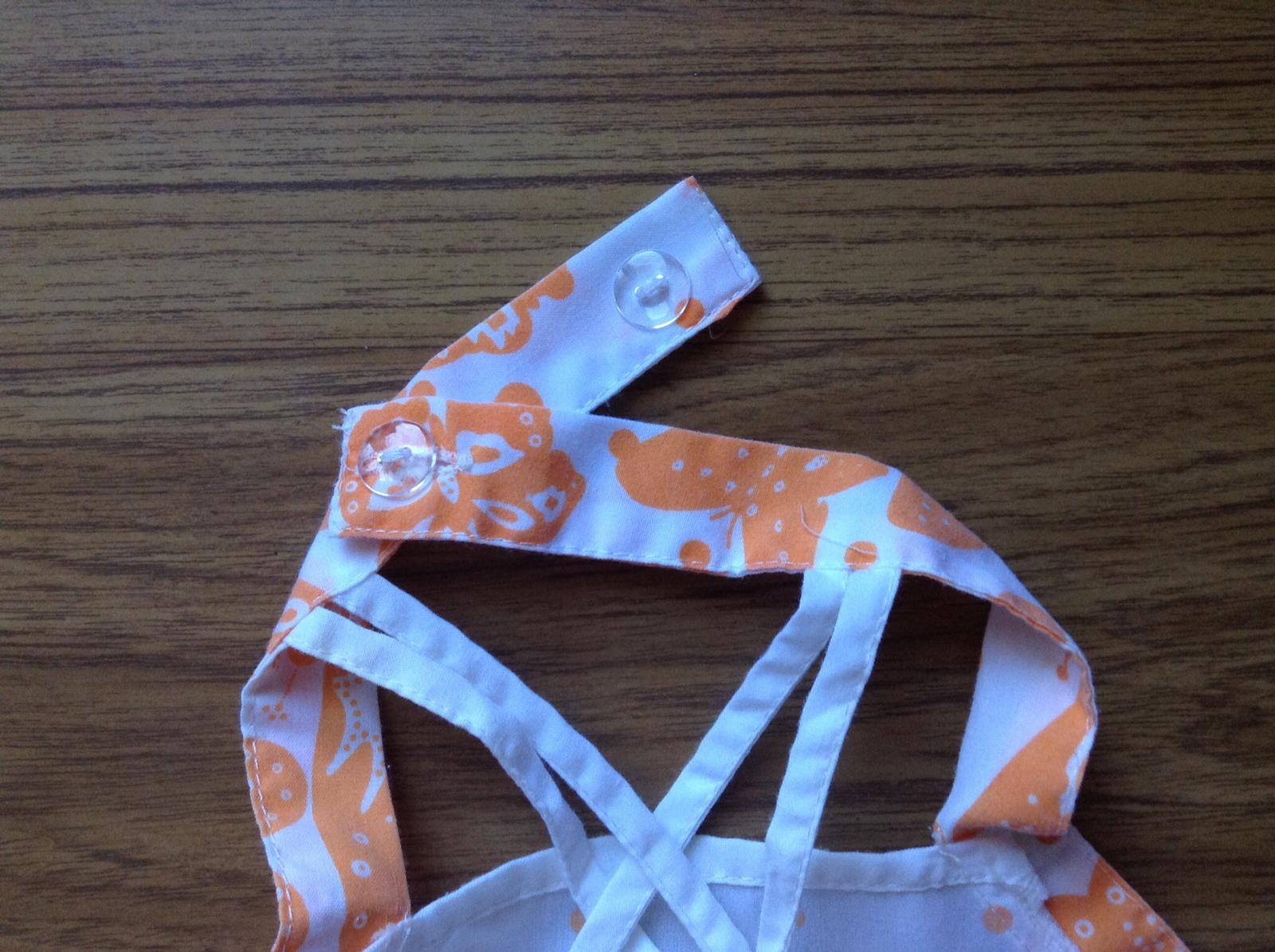 Oblecene 2x vyborny stav, vzadu na chrbte prekrizene, zapinanie okolo krku, regulovatelne na 2 gombiky, farby syte nesprate, velkost odhadom, nie je uvedena
