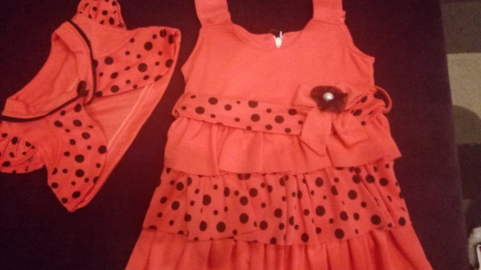 Krásne šaty pre malé dámy. S motívom Príjemné, pohodlné, netlačia voľný tričkový strih. Výborne sa nosia v lete na plavky alebo do každého počasia. Farba ako na fotografii. Rozmer: 92, 98, 104, 11...