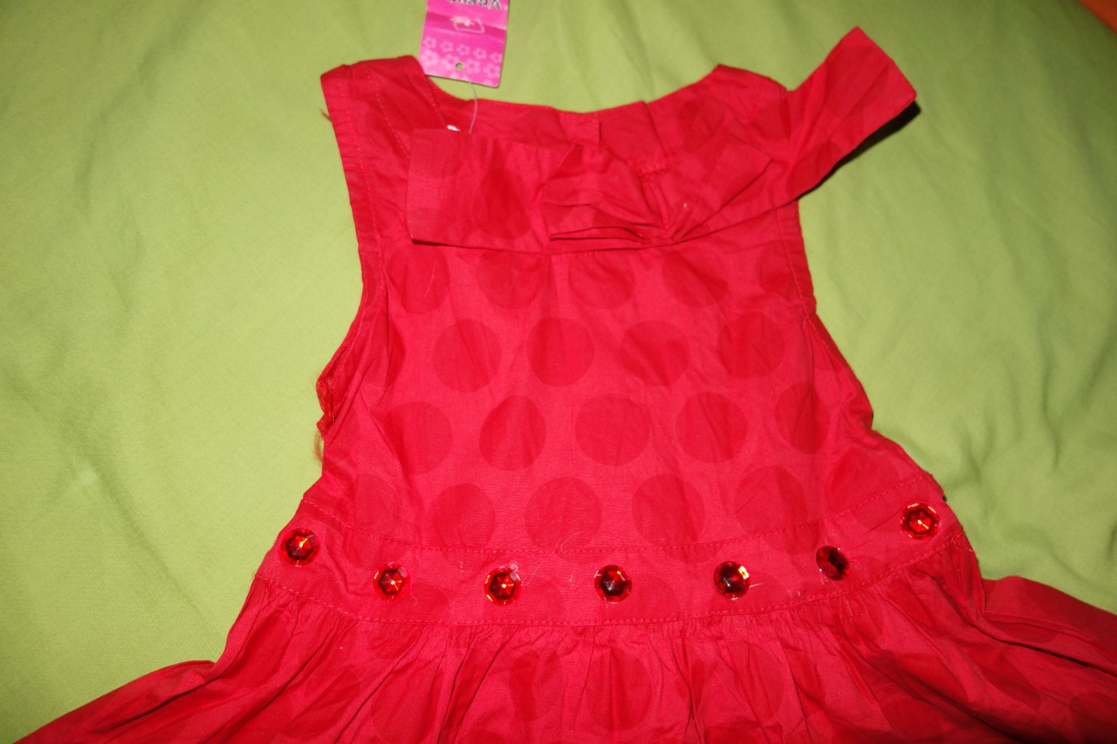 Pekne satocky s Minnie- nove, s visackami. Mozu byt aj sviatonejsie. Goralky na pase su nalepene- odporucam prisit (maju aj dierky na prisitie), inak sa odlepia. Velkost je uvedena ako 90, podla mna kludne aj 98.