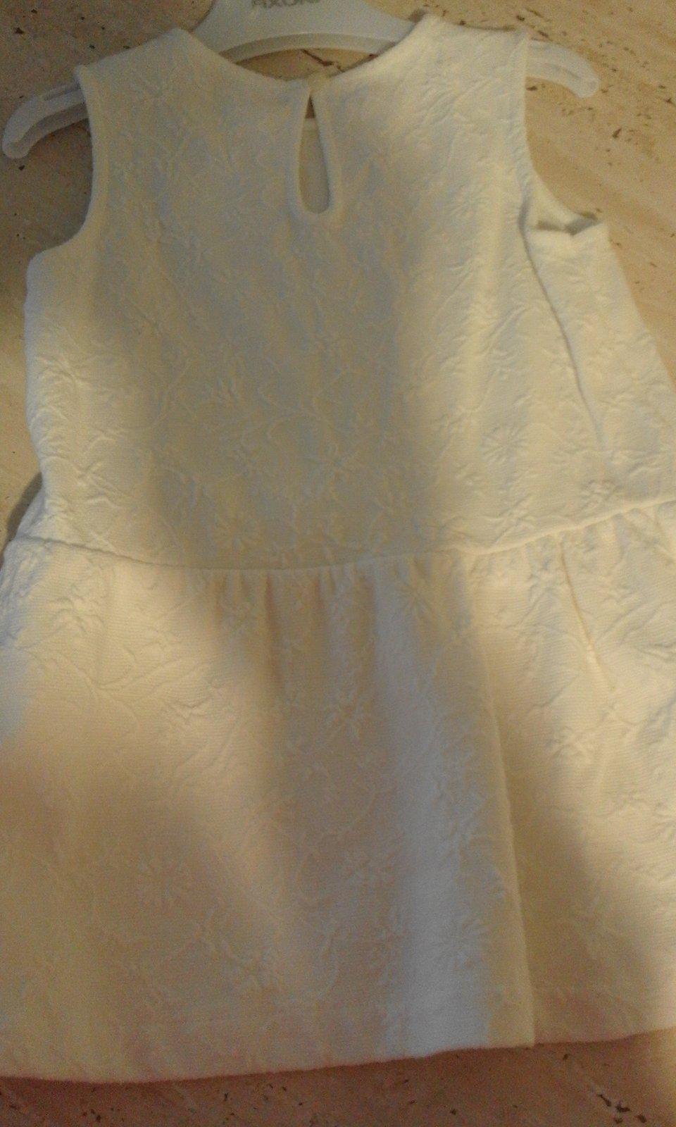 Elegantné biele letné šatočky pre dievčatko s plastickým vzorom kvietkov, zdobené mašličkou, vzadu na zapínanie. Vo veľmi dobrom stave.