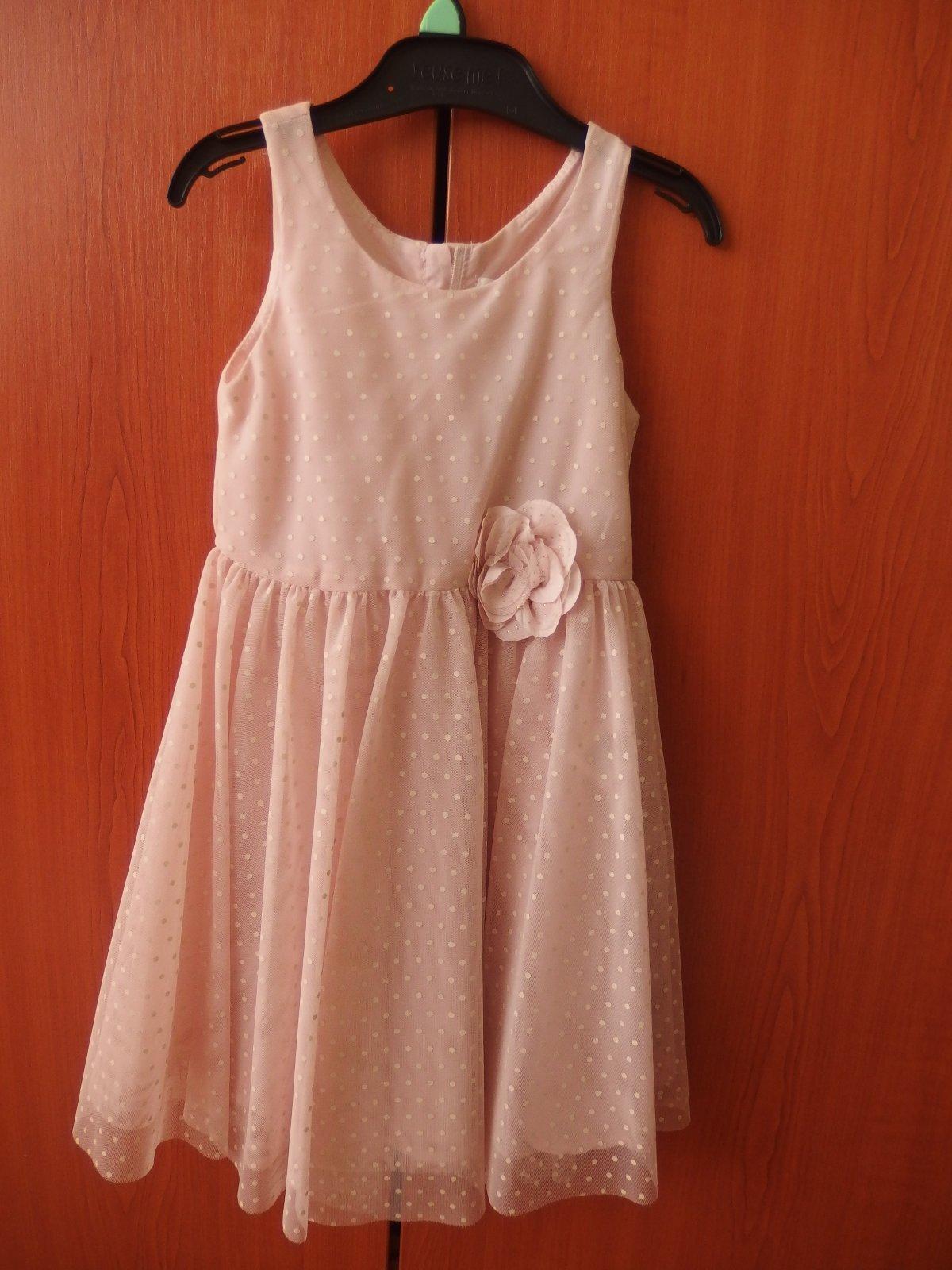 Šaty šité na mieru. Odhadujem 104 110 . Šaty sú v 100% stave sú prekrásne . Na chrbte majú gumičku