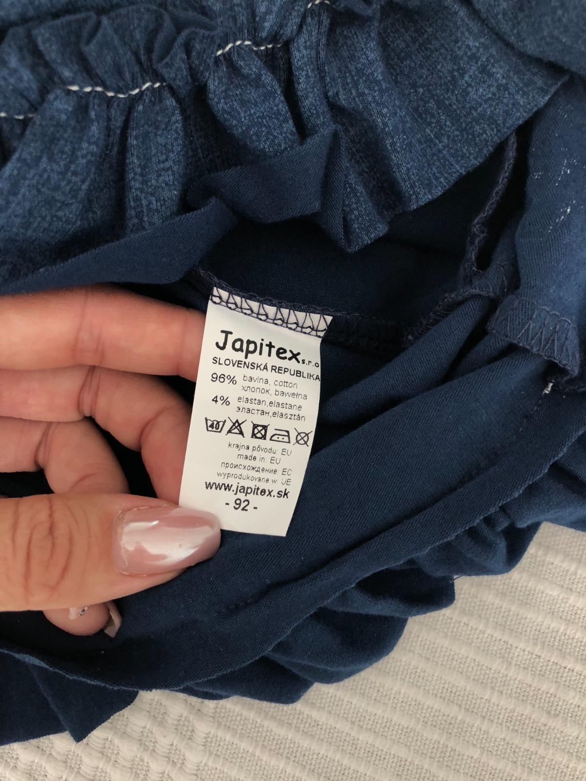 Krásny stav skoro nenosene vôbec. Kvietkovane sú kvalitná značková Slovenska značka. Píše veľkosť 104 ale podľa mna take menšie. Na nich je napísané meno fixou (muž napísal) a troska presvitá na dr...