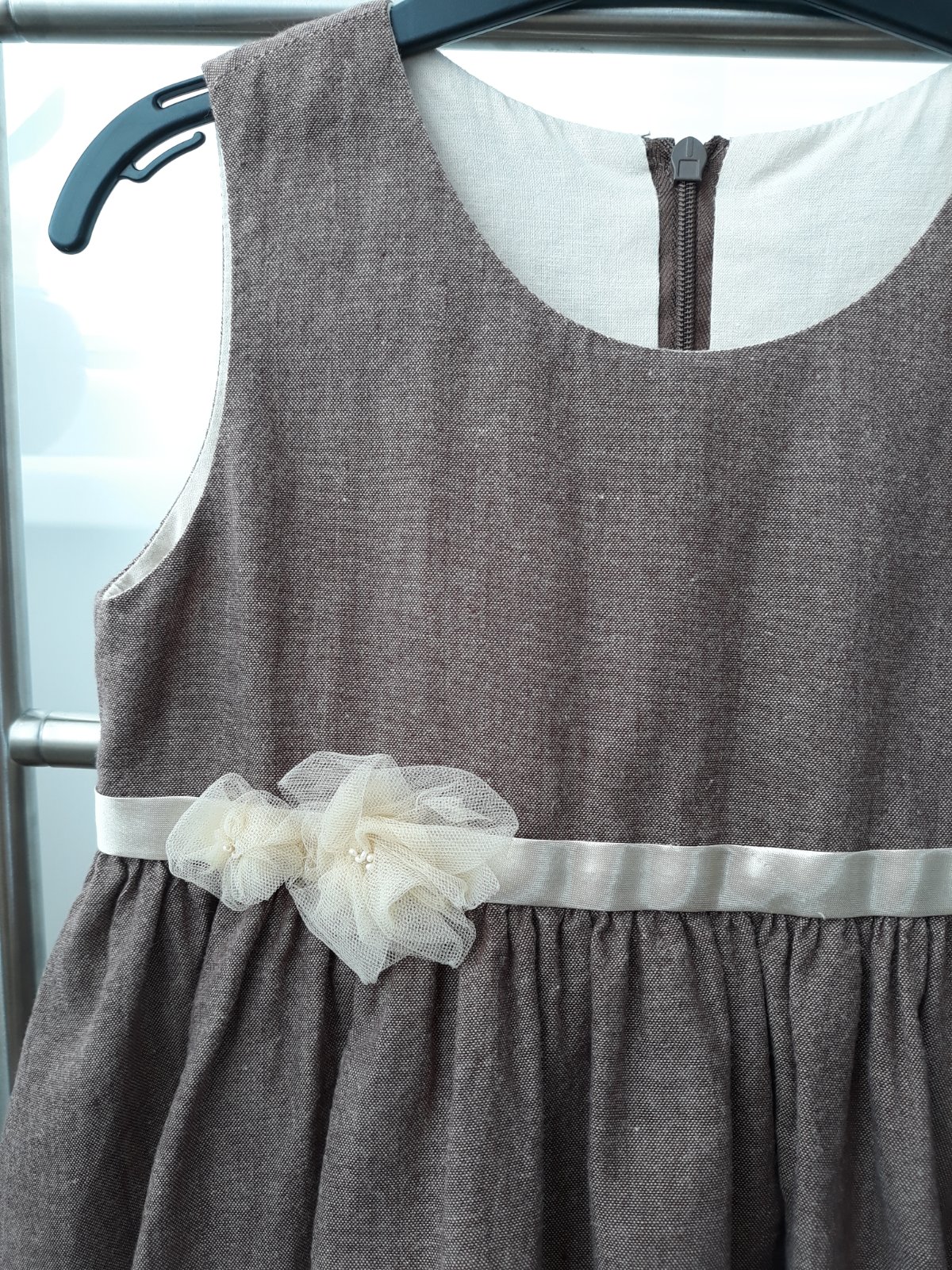 Predám dievčenské šaty šité na mieru na vek 2,5 - 3,5 roka. Šaty sa zapínajú na zips na zadnom diely, sú podšité, na spodničke sú prišité tylové volániky. V páse je prišitá úzka stuha. Šaty sú vo veľmi dobrom stave. Jediným nedostatkom je zatiahnutá jedna nitka na stužke v páse (viď. predposledné foto). Na požiadanie rada premeriam.
