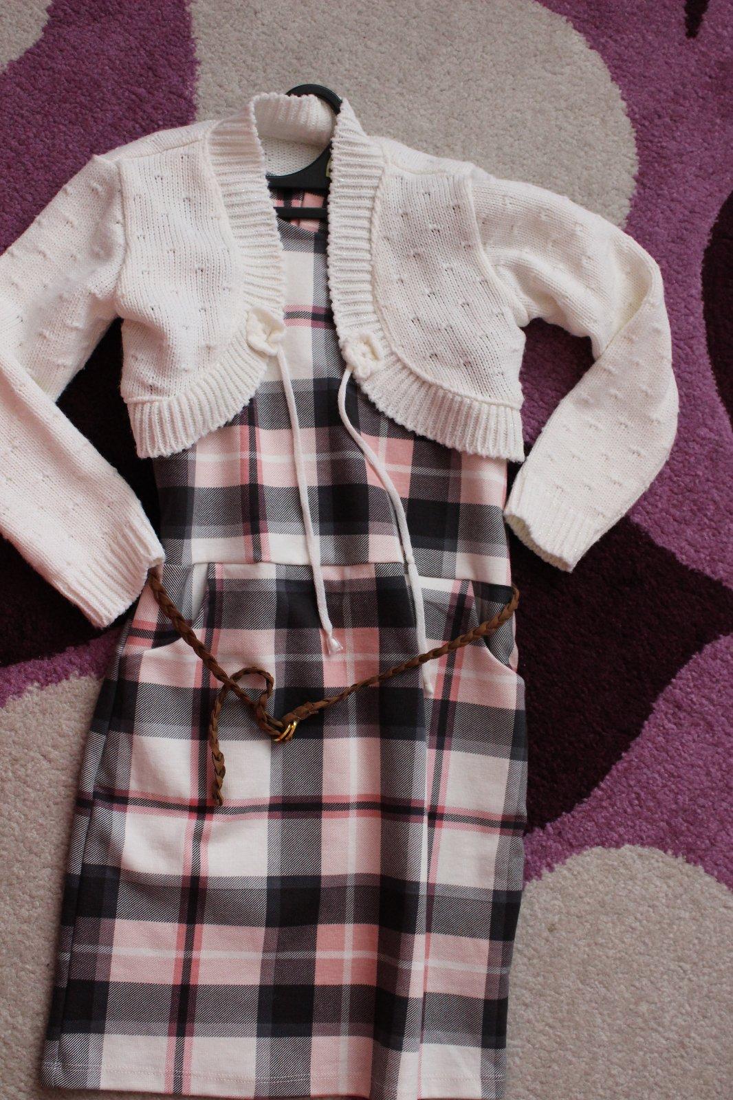 Perfektné kockované šaty bussines štýlu... malá ich mala iba na preberaní vysvedčenia. K tomu bolerko na uviazanie. K šiatkam patrí