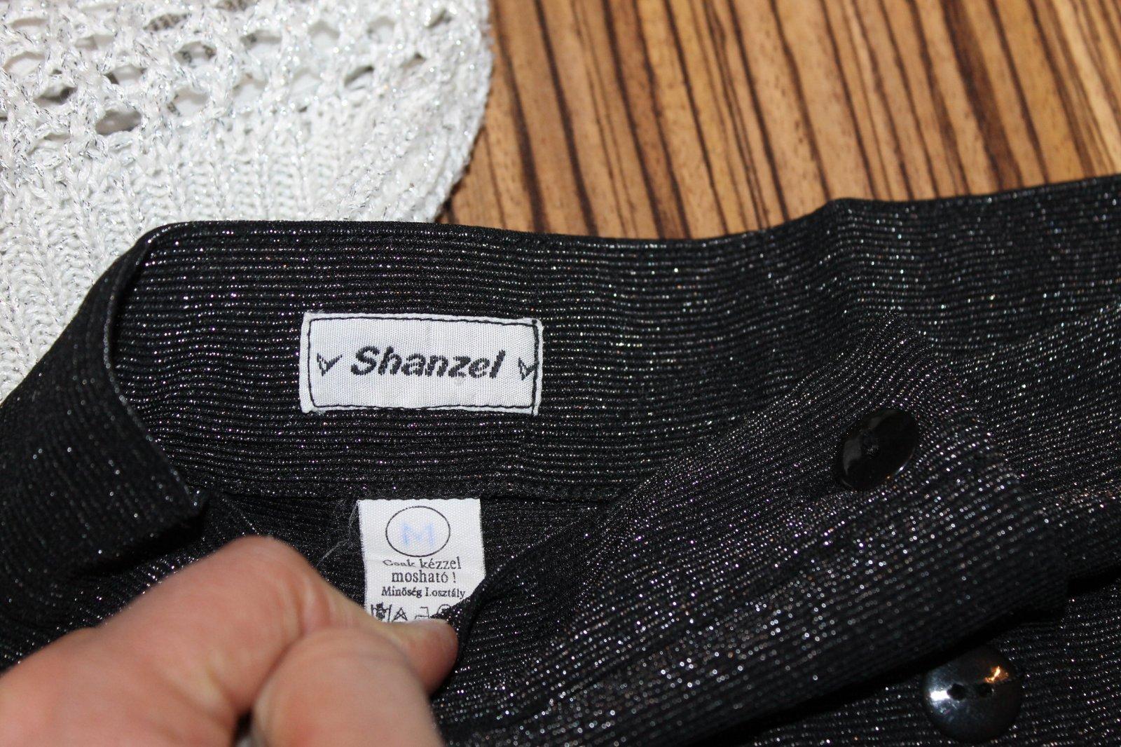 Málo nosená, v super stave, bez poškodení, so strieborným metalickým vlákonom. Zapínanie na gombíky. Elastická, Veľ. 12/13r. RO: pás na gumu 2x 32-48cm, celk. dl. 37 cm.