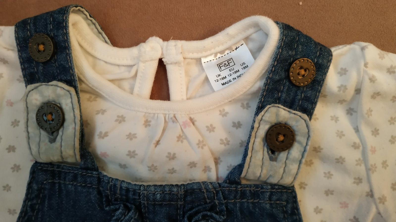 Predám pekné riflové šaty s pulovrikom značky f&f. Veľkosť 12-18m. Top stav, ako nové.
