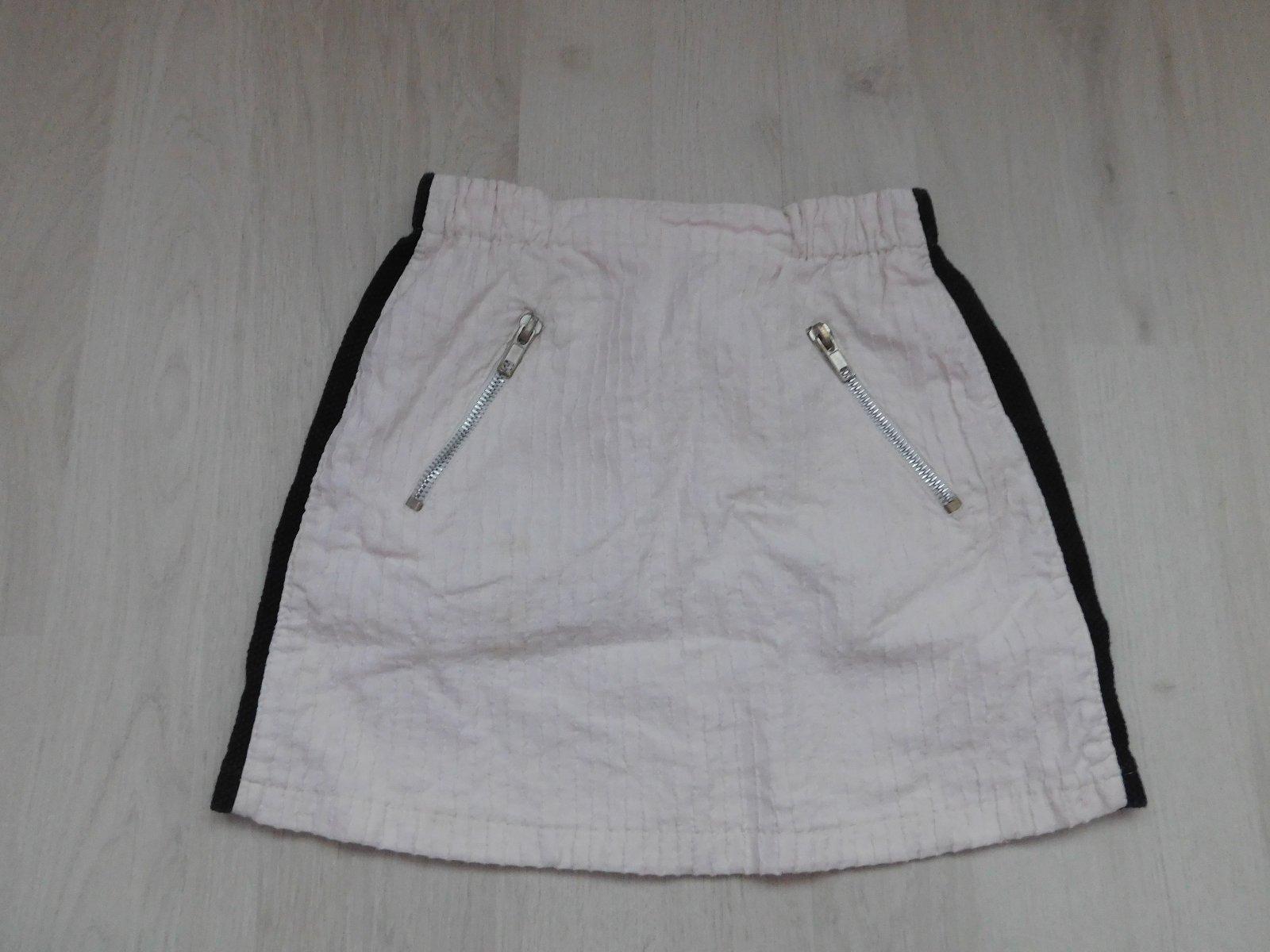 Malo nosena suknicka z pevnejsej bavlny, vrecka vpredu aj vzadu, zapinanie gombik+zips. Dl. 26cm, sirka dole 32 cm, pas nastavitelny gumickami.