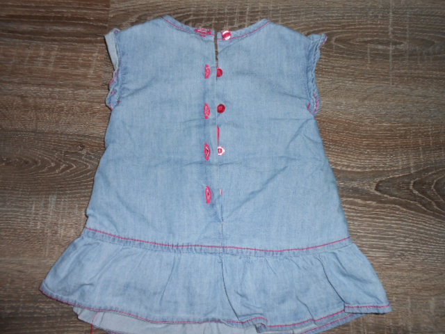 60. JUNIORS krasne riflové letné šatky vo velkosti 6/9 mesiacov, super stav, bez poškodení, makka riflovina v kombinácii s ružovou , zapínanie vzadu na chrbte, dlžka je 37cm a širka v podpazuší je cca 24cm