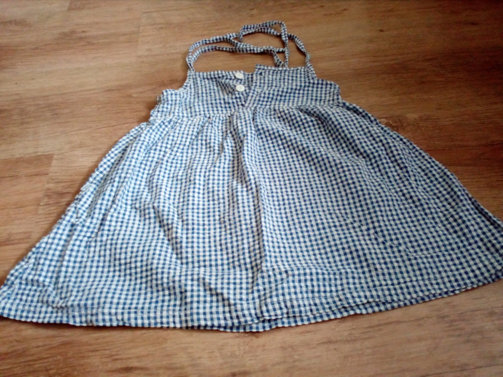 Milé letné šatočky, veľkosť nie je písaná, odhadom tak 1,5-2 roky, ale keďže majú viazanie na šnúrky dá sa do regulovať na vek. My sme nosili viac sezón.