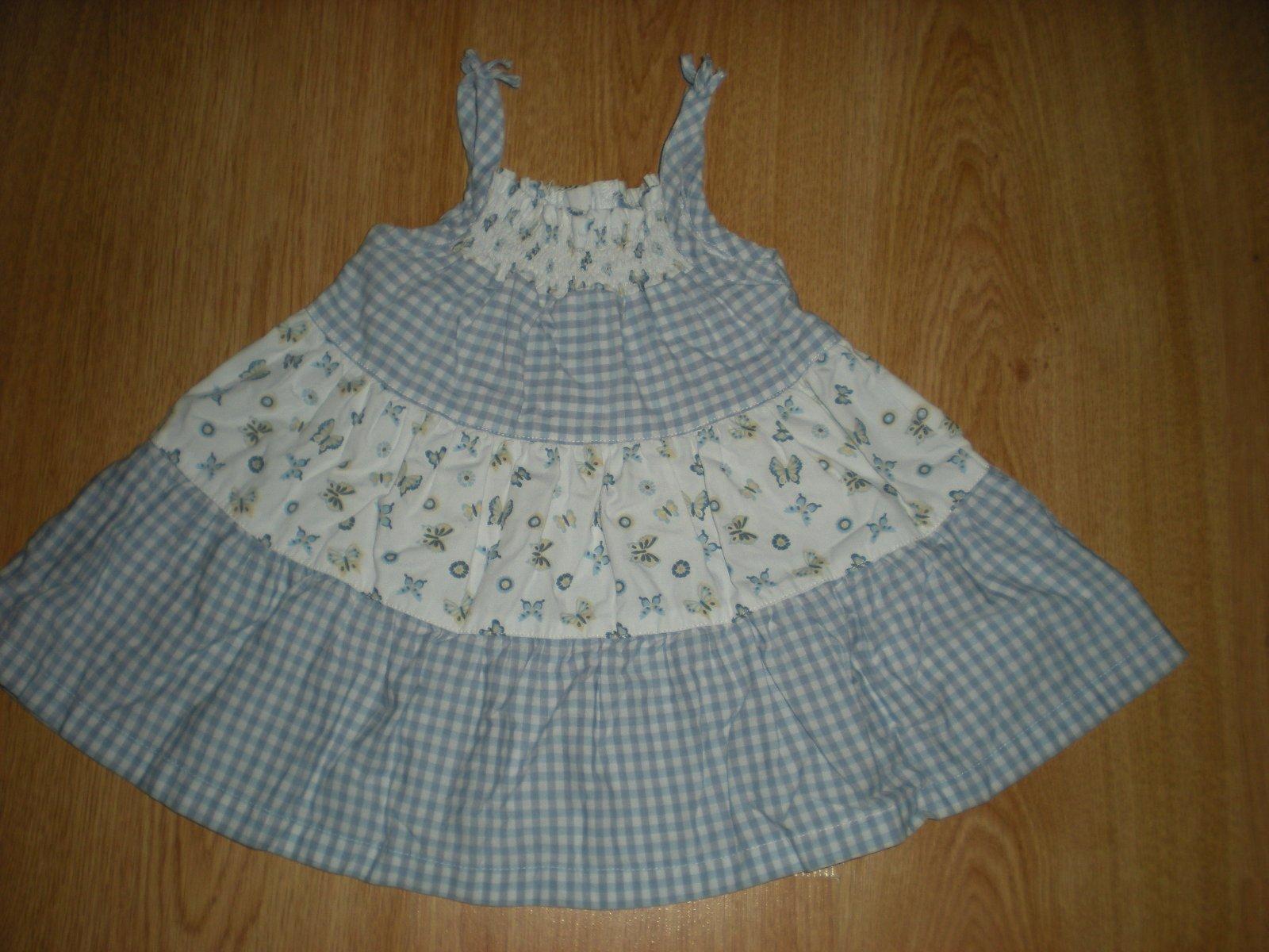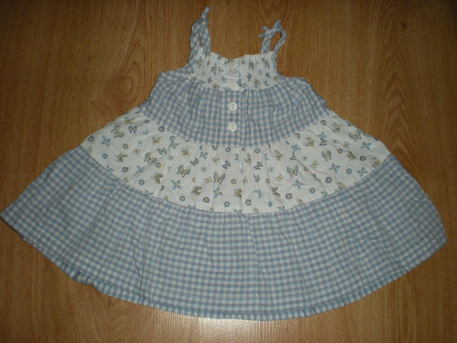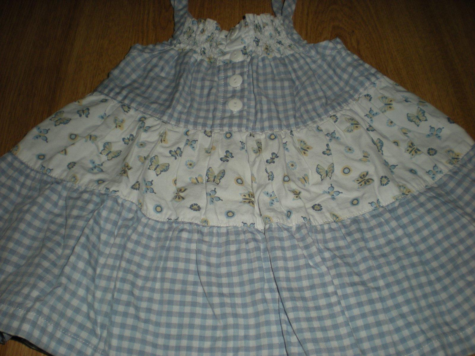 Veľmi dobrý stav! Dievčenské pásikavé šaty s volánikmi a motýlmi, bavlnené, elastické, zapínanie na jeden gombík. ROZMERY: dĺžka: 41cm, dĺžka rukáv od krku:3,5cm,pod pazuchami meraná šírka:2x27,5c...