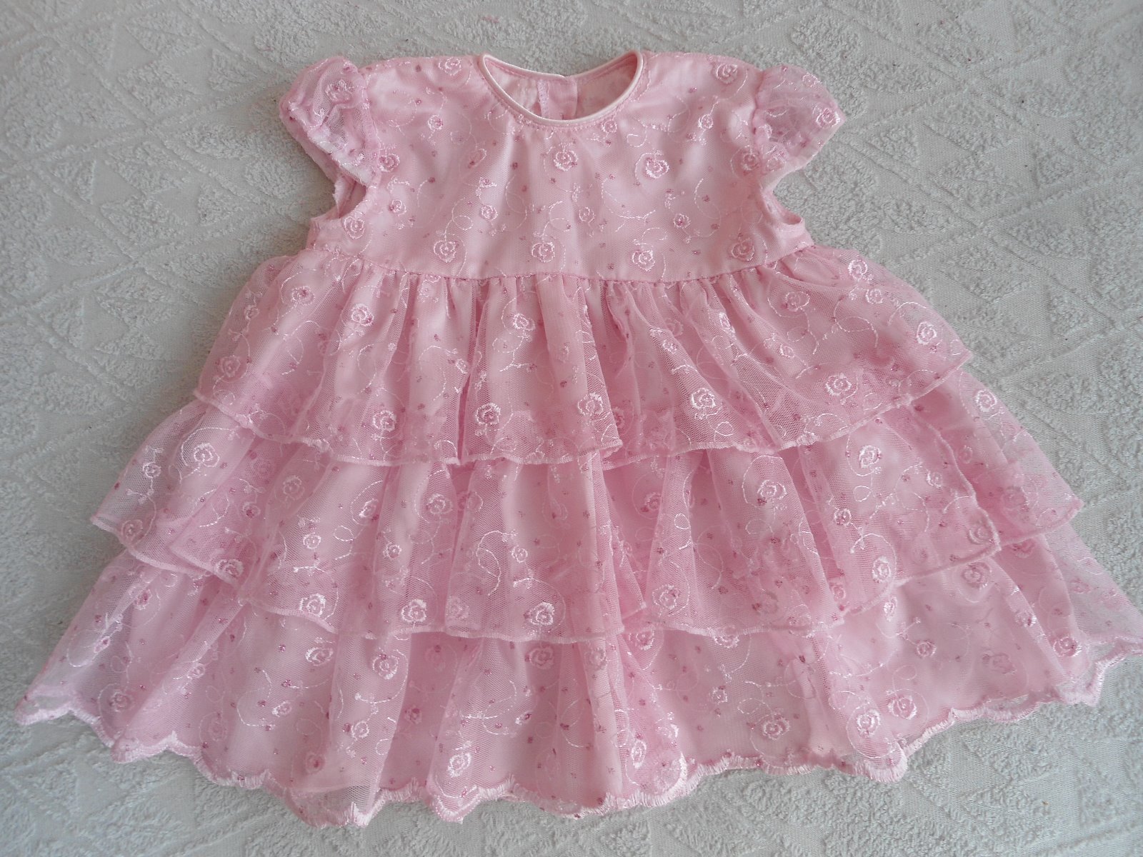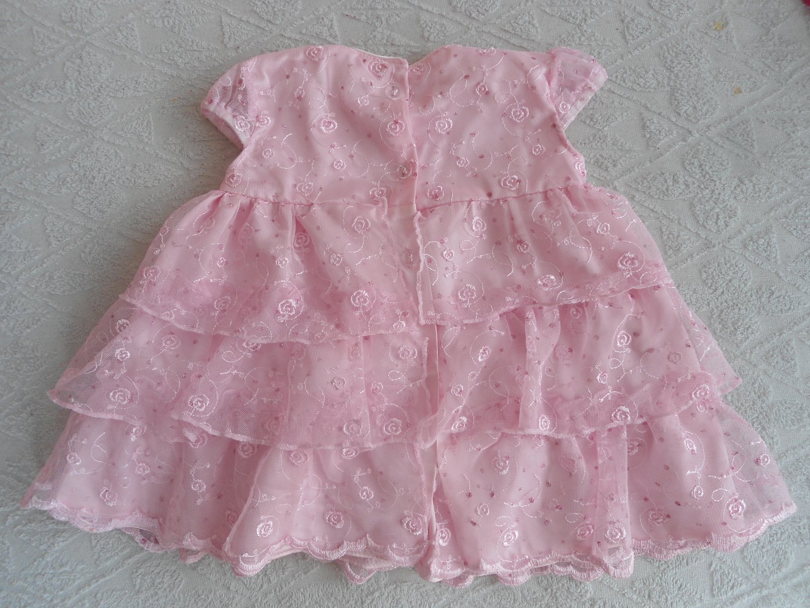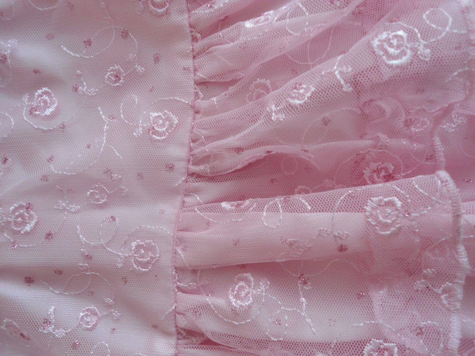 ružové krajkové veľmi pekné šatičky s vyšívanými kvietočkami, z vnútornej strany bavlnený satén