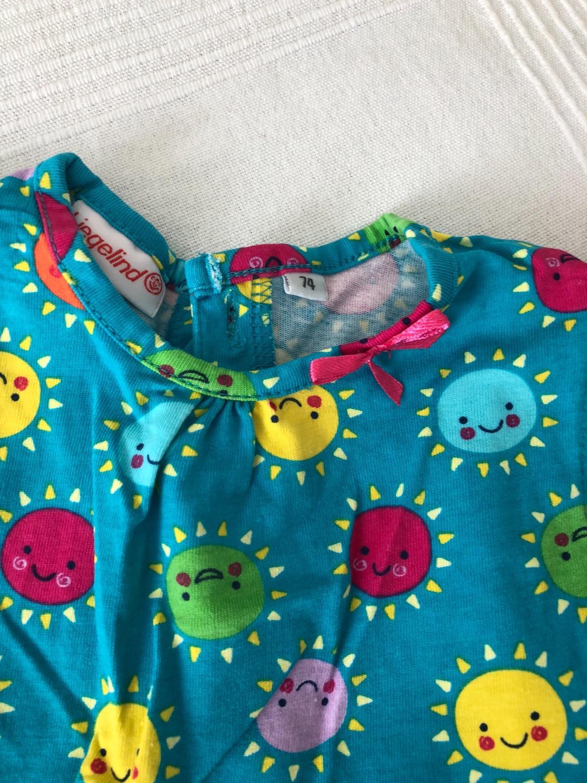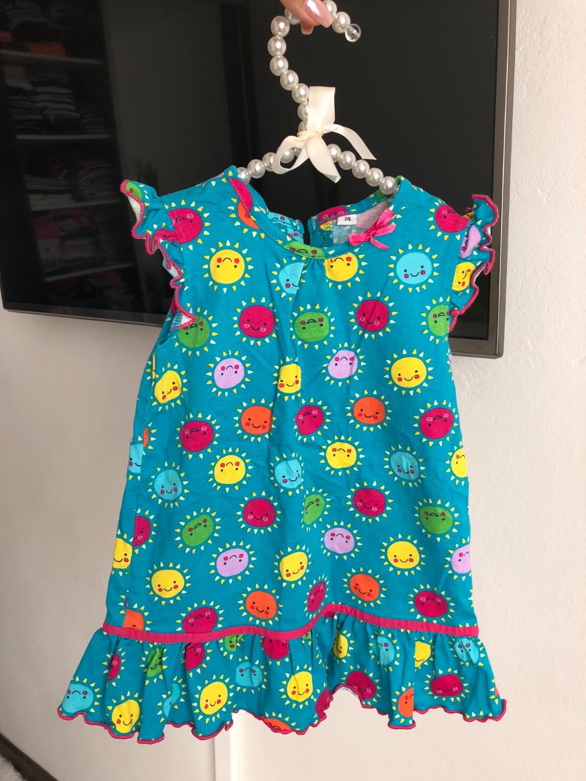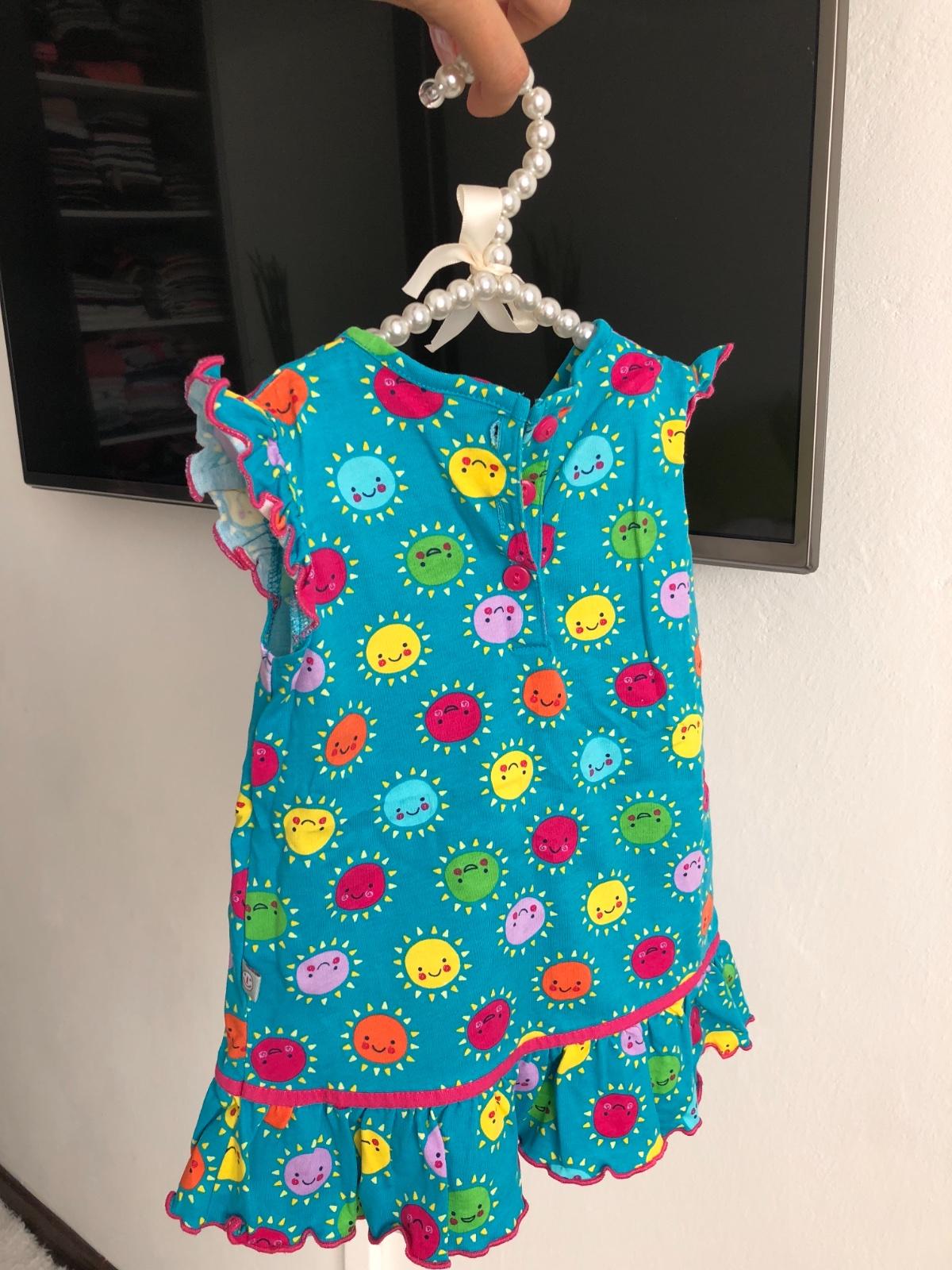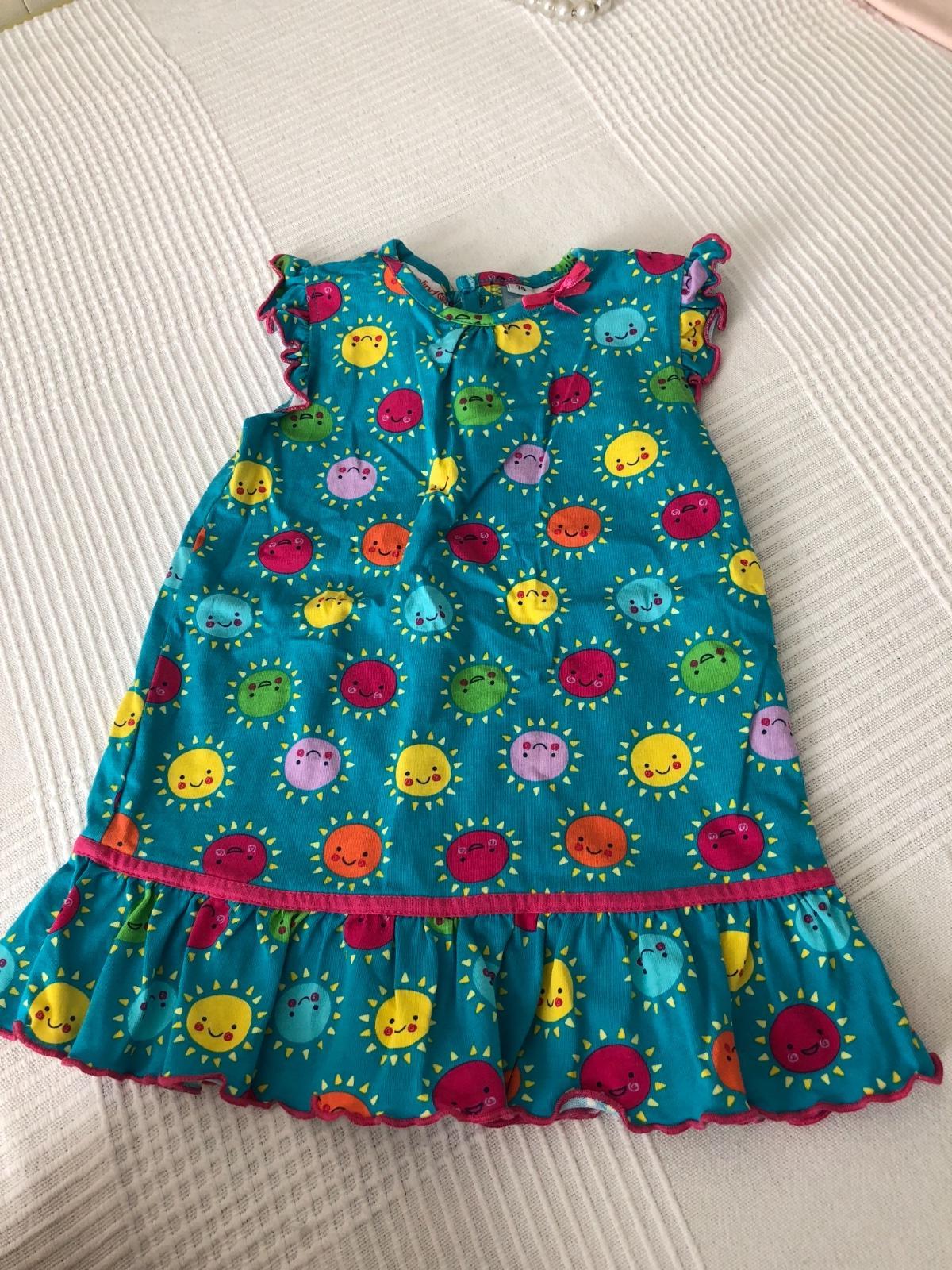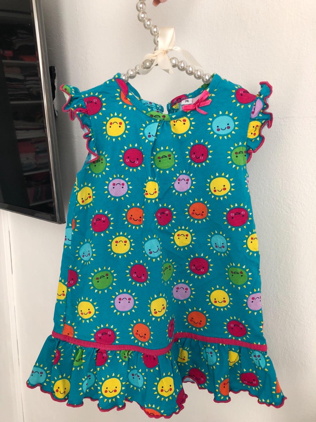 Letne, tyrkisovo-zelene saty na ramienka, zn.Kitchoun. Na ramienkach su farebne goralky. Velkost 12mesiacov. Bez poskodeni, cena + postovne