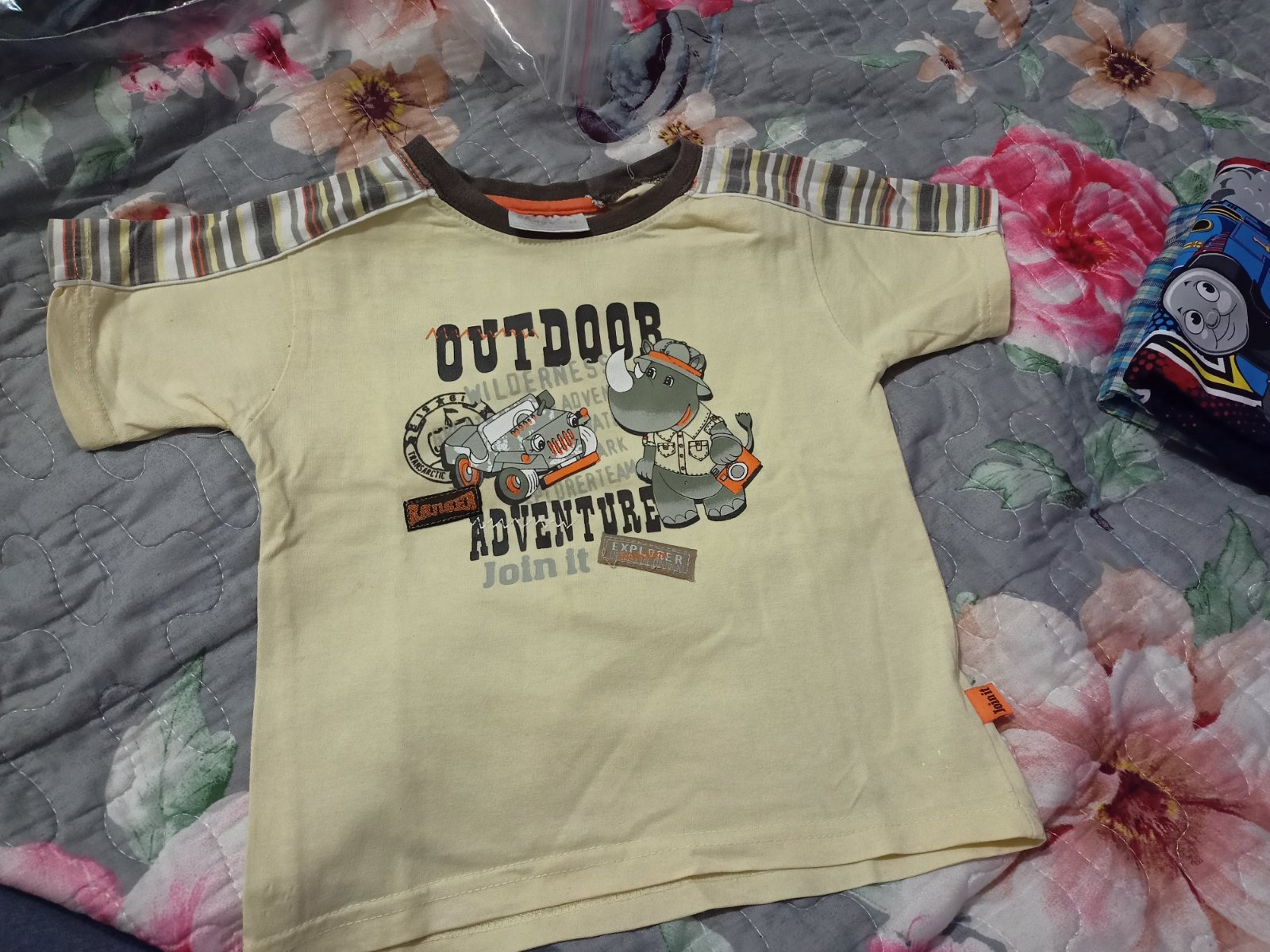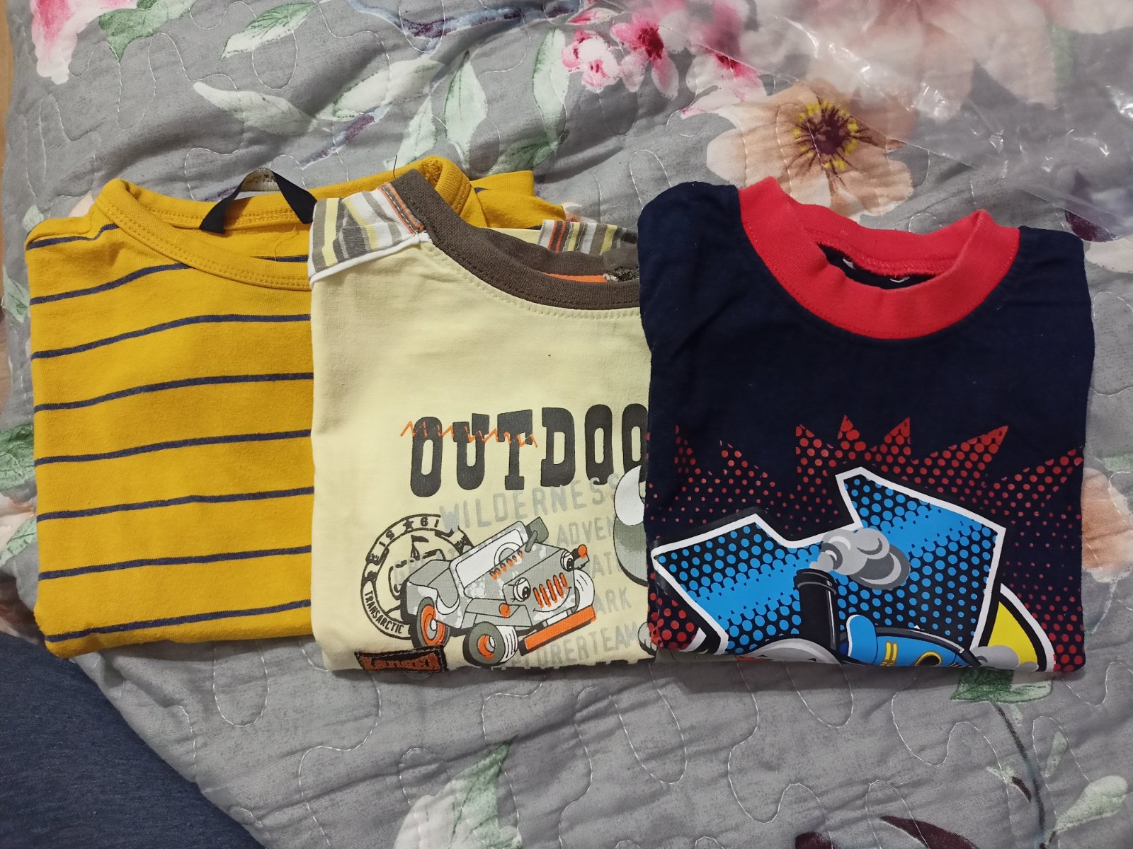 Predám krásne tričká,nosené ale bez fliackov a šmolkov neroztahane,blede s nosorožecom okay, horčicove George, vláčik Tomáš už neviem.odstrihnuty štítok, cena za všetky spolu, predám aj osobitne cena za kus 2 €