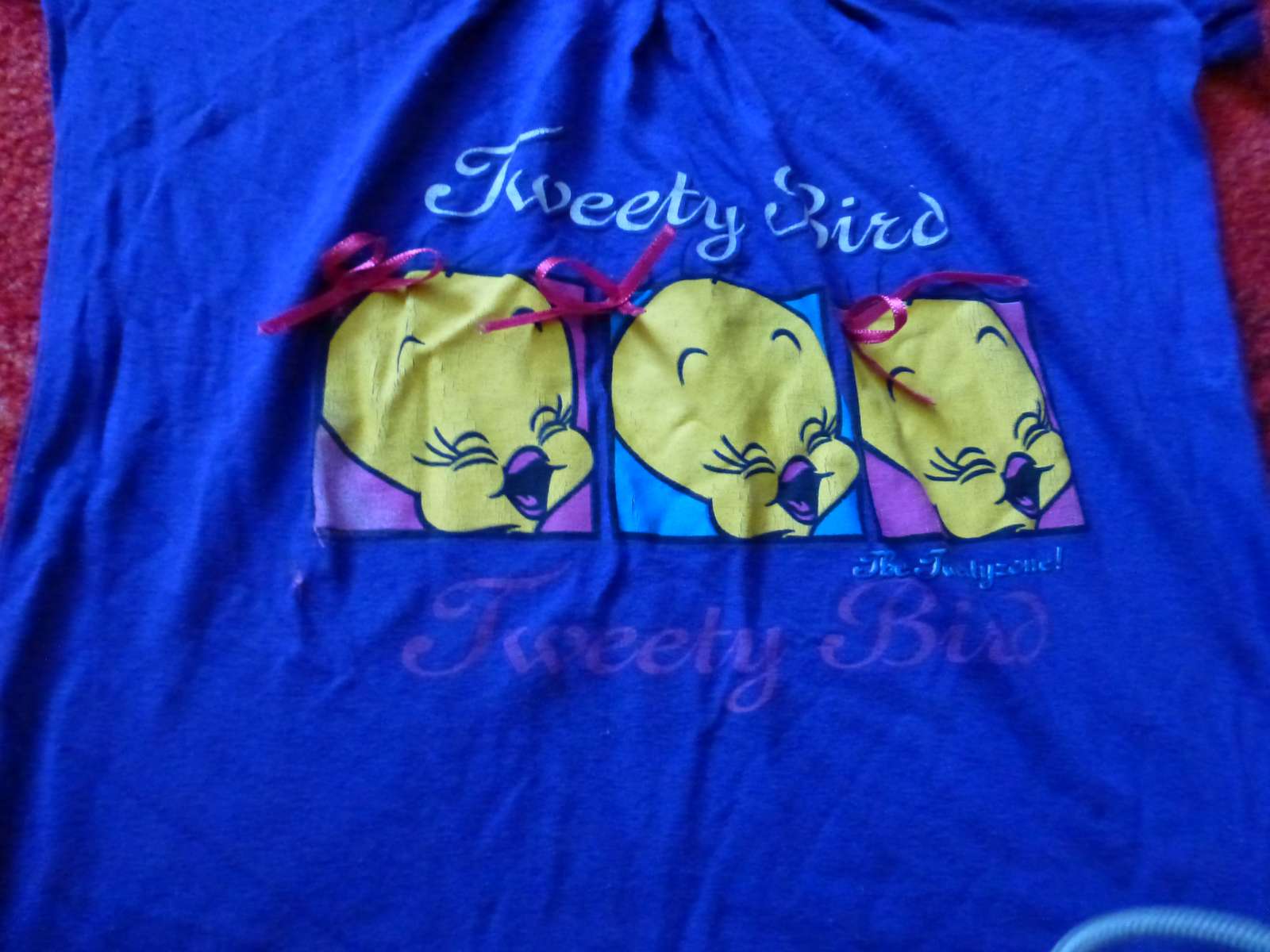tričko s potlačou na oboch stranách veselý motív bez poškodenia dobré sa nosí s legínami,lebo je dlhšie