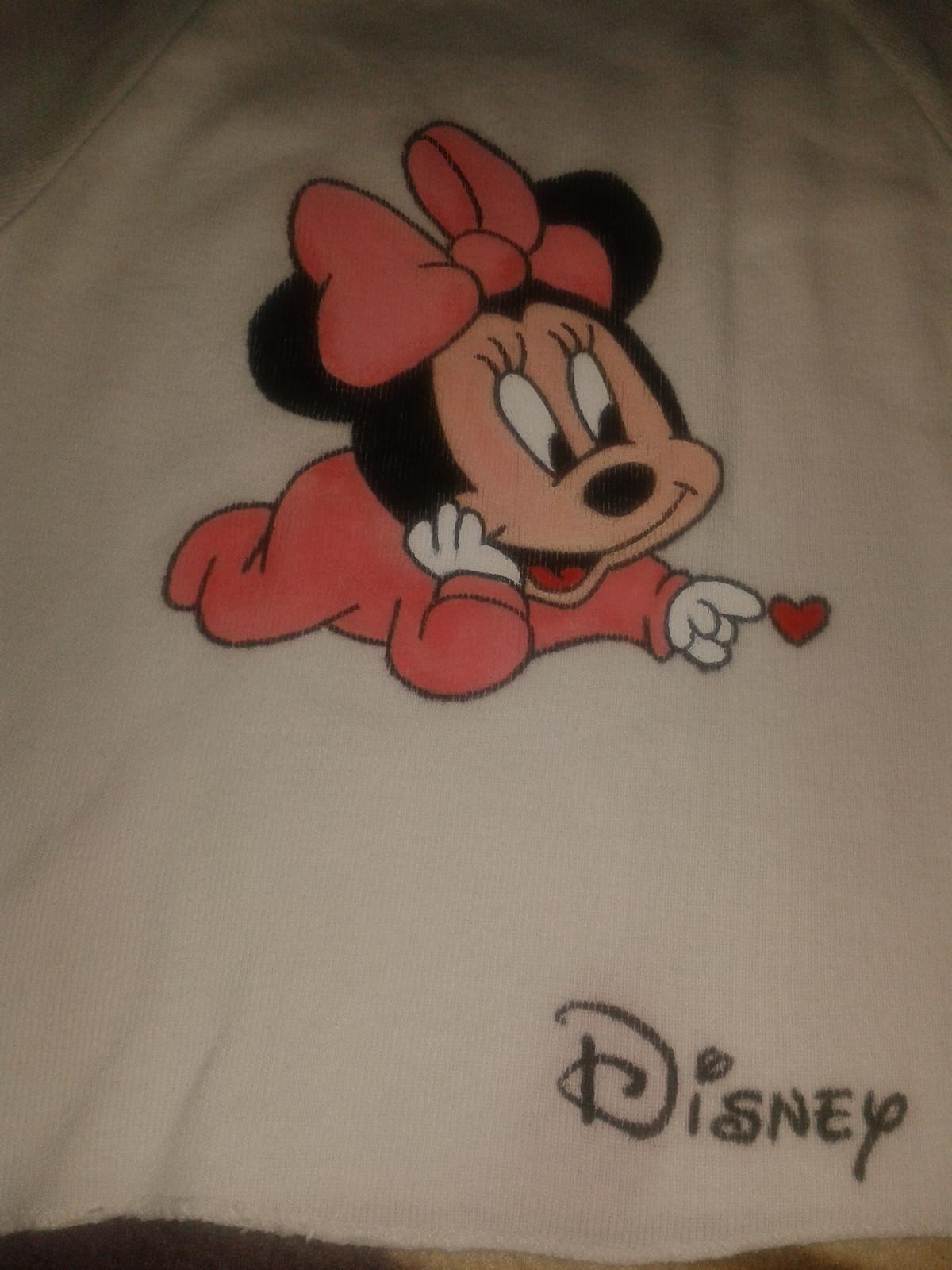 Mnou namalovany obrazok na tricku. Velkost 74-80. Pod pismenom D flek,no v skutocnosti to nieje tak vidiet ako na foto. Nosene.