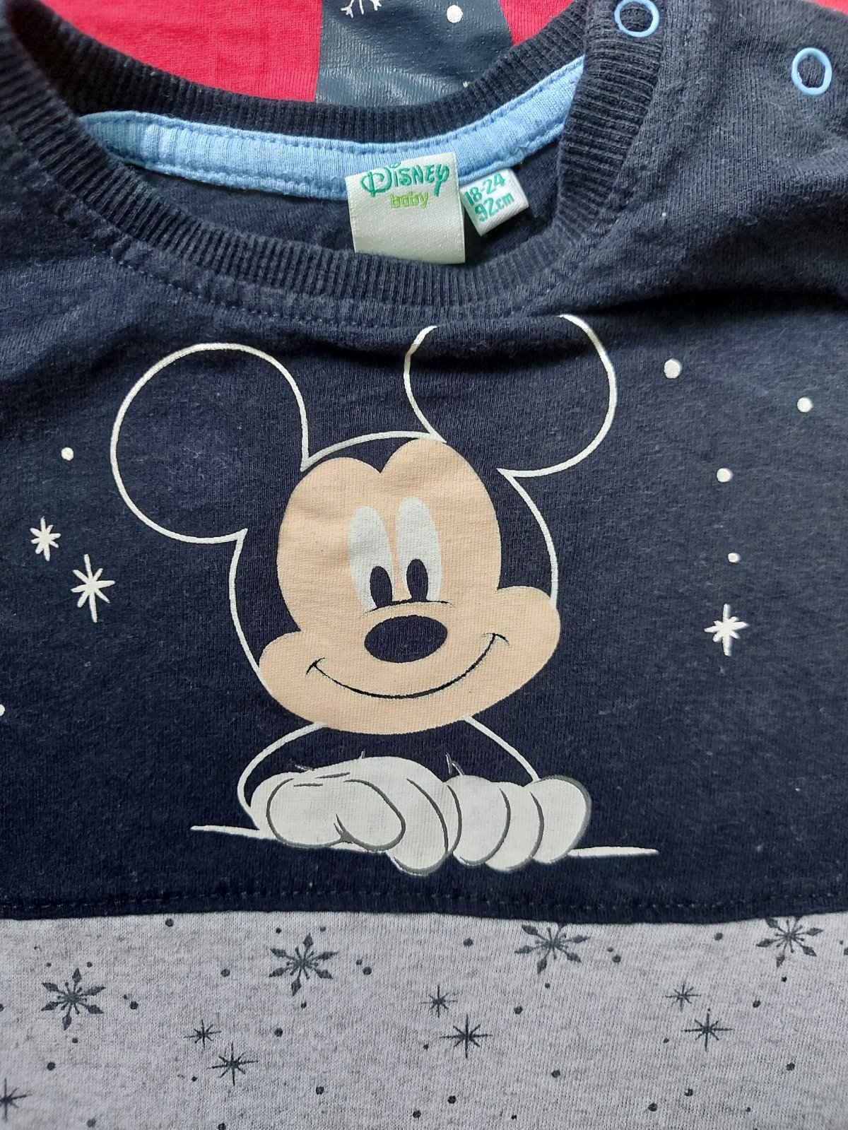 Len ten Mickey ostal, ma bledšiu spranú farbu ale aplikácia je ok, kusok na boku je vyparane, sikovna mamina to hravo zasije.