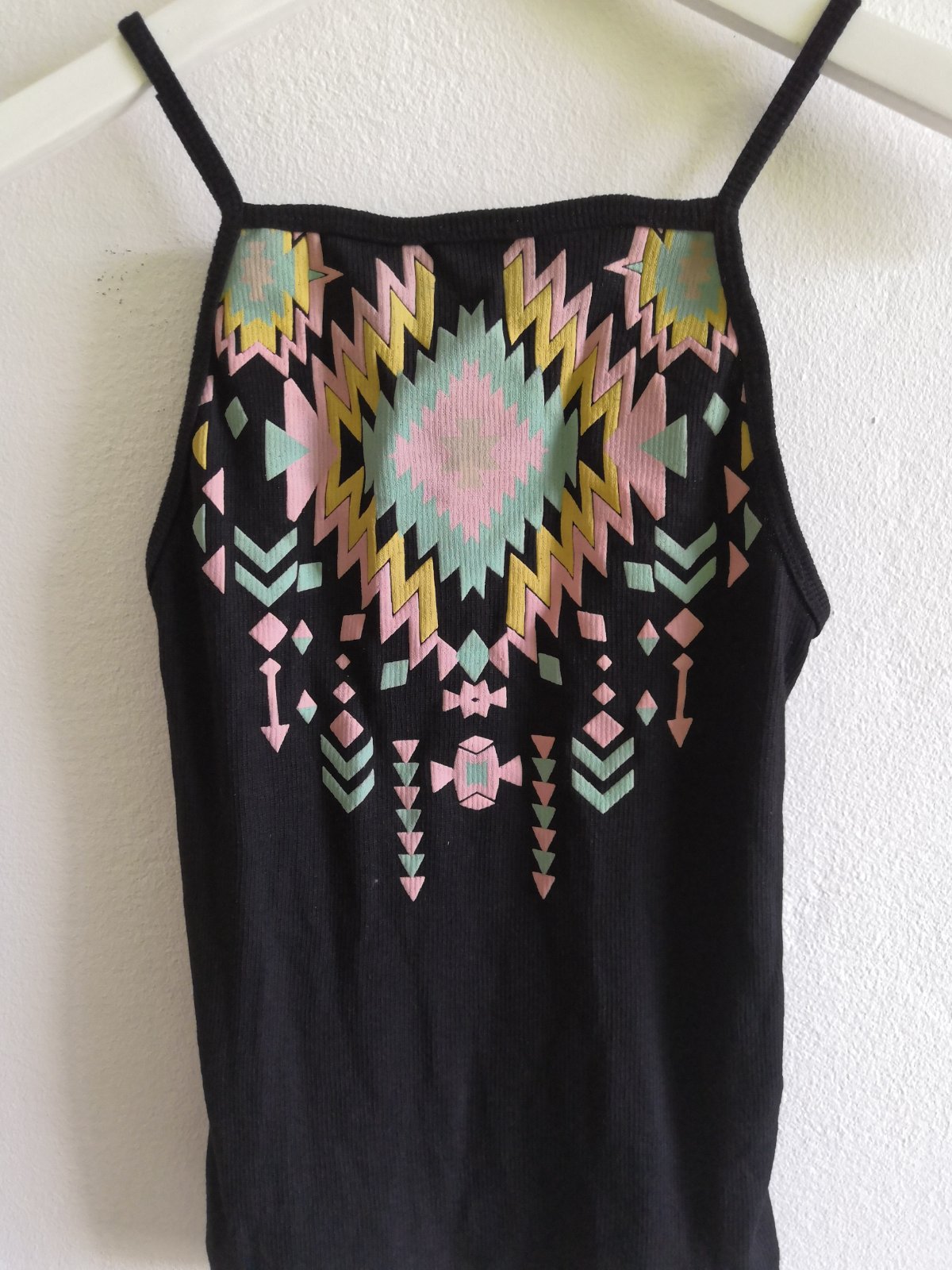 Pekný nosený stav. Dĺžka trička je 39cm. Šírka pod pazuchami v kľude je 32cm. Pod ramienkami na chrbte je všitá guma, takže hrudník povolí až na 48cm. Pekne schová väčšie bruško.