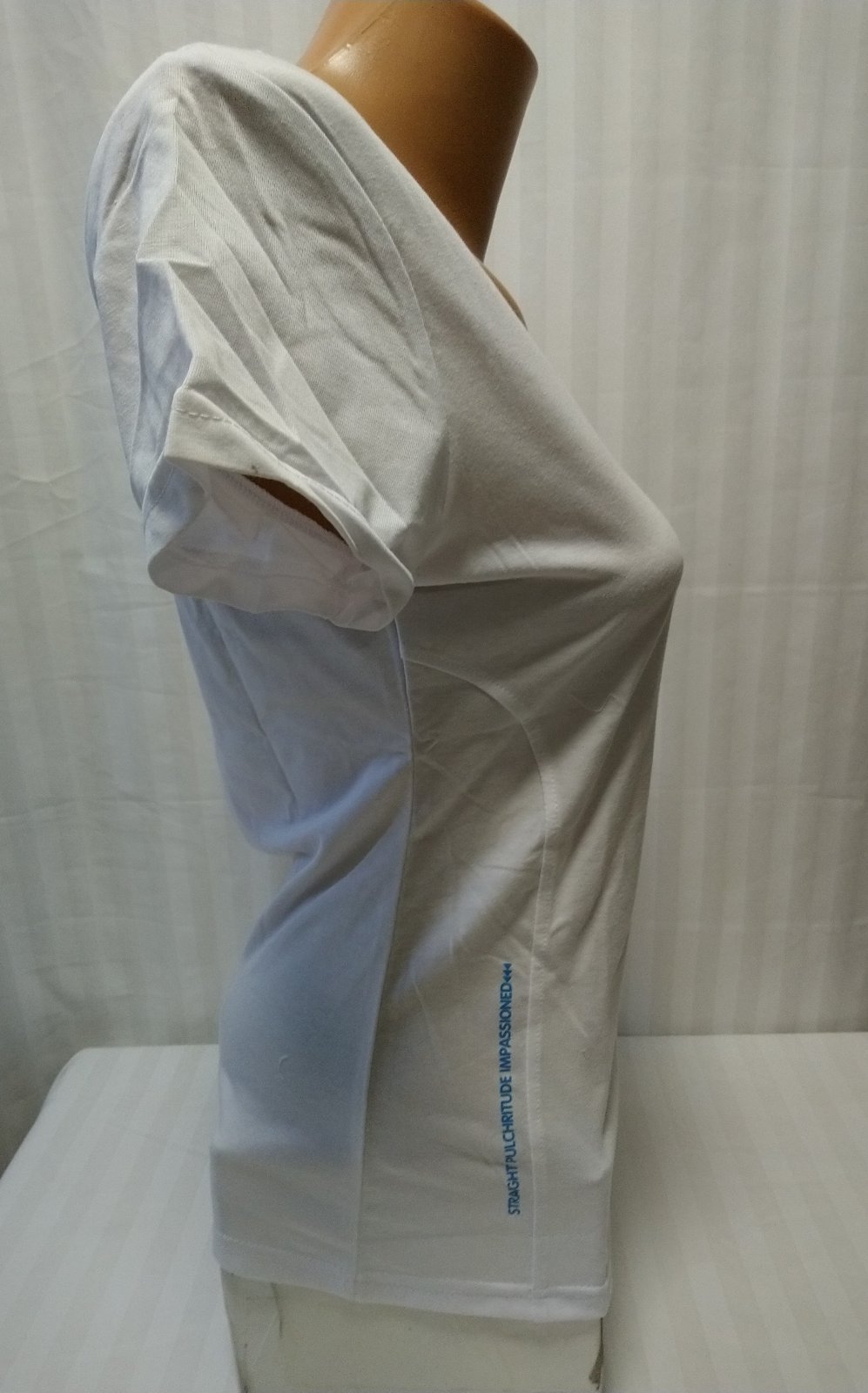 nový dámsky elastický biely top s malým nápisom,