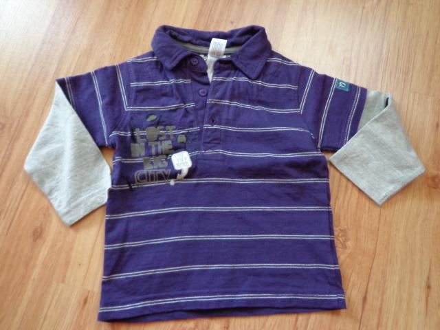 Pekne riešené tričko, dvojitý efekt na rukávoch, nadpisy aj na jednom rukáve. Zapínanie na 3 gombíky. Mali sme 2 x na sebe, takže super stav. Super na jeseň alebo na chladnejšie leto. Veľkosť uvádza 86. Cena: 4 Eur