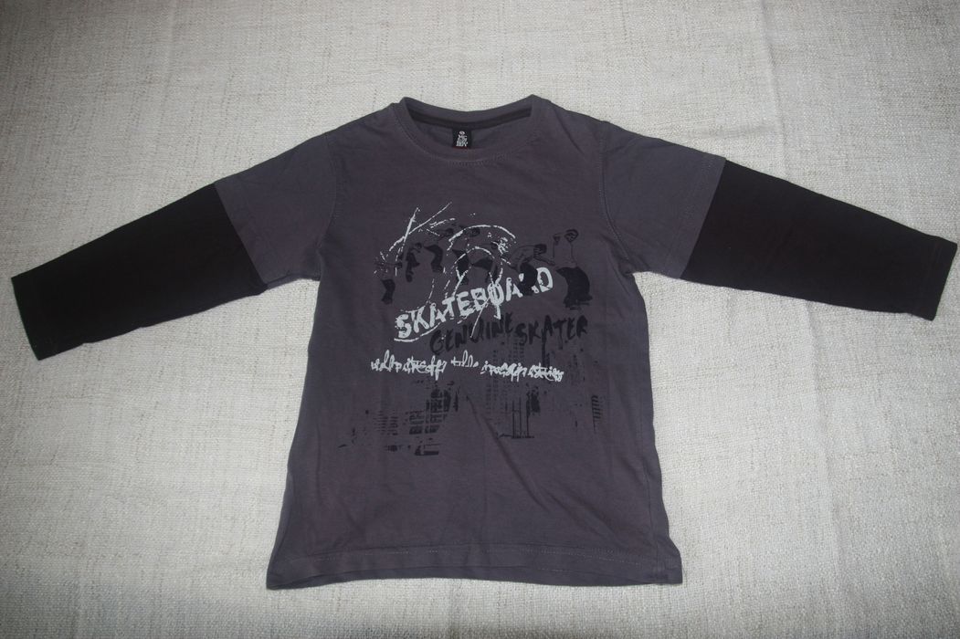Predám tričko s dlhým rukávom s motívom skateboard na 5 rokov (104-110), používané. Bez poškodenia. Cena 2,30 € + poštovné