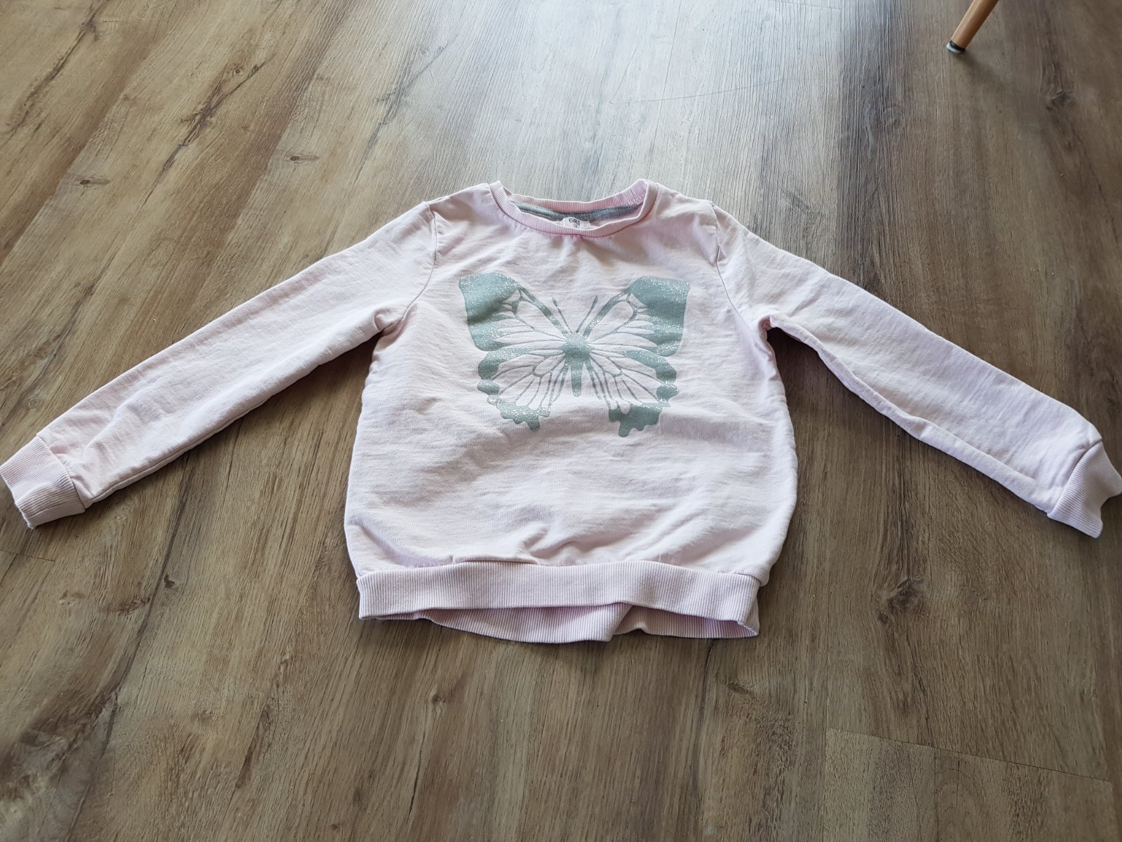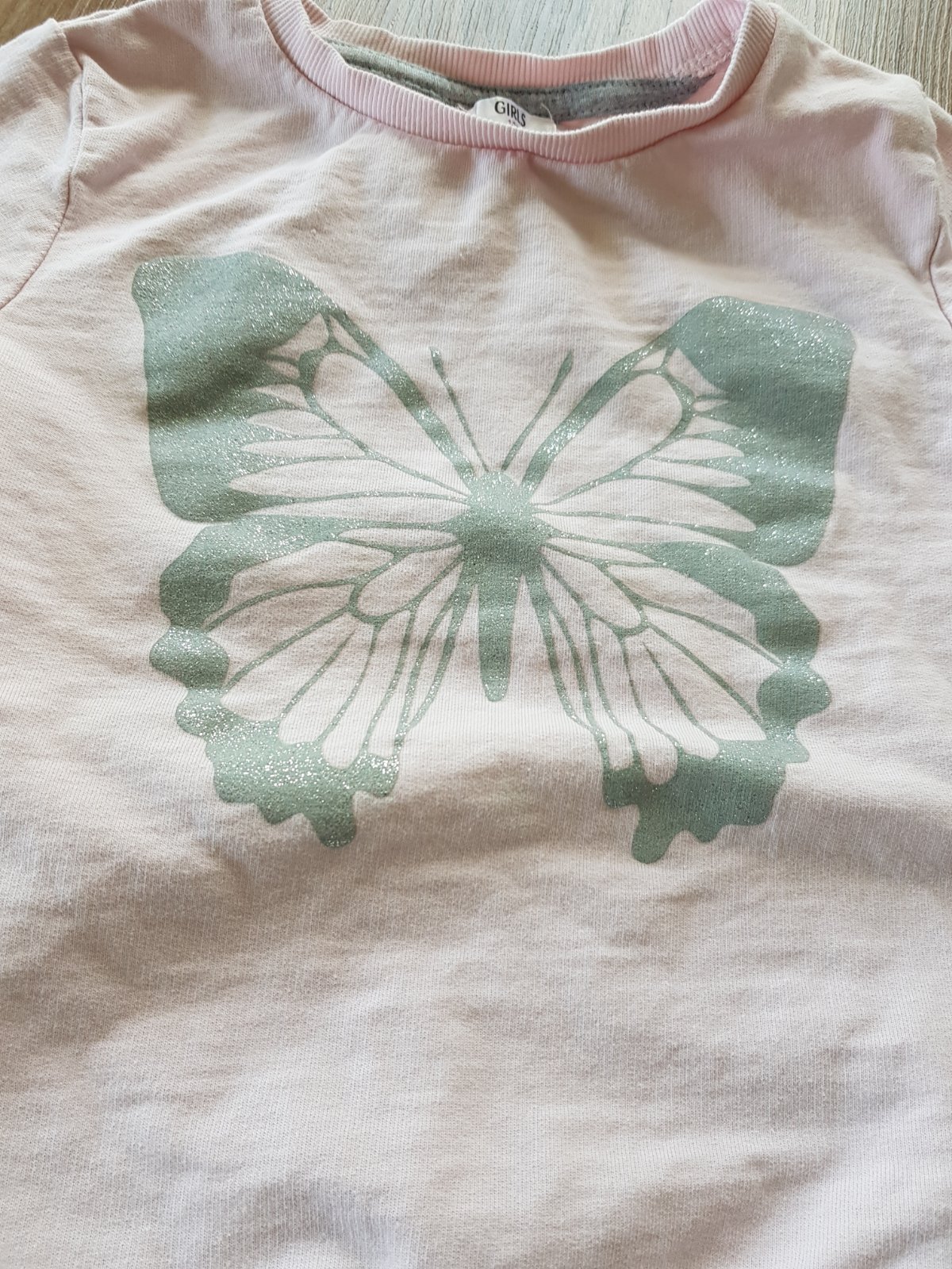 Mikinkové tričko s trblietavým motýľom.
