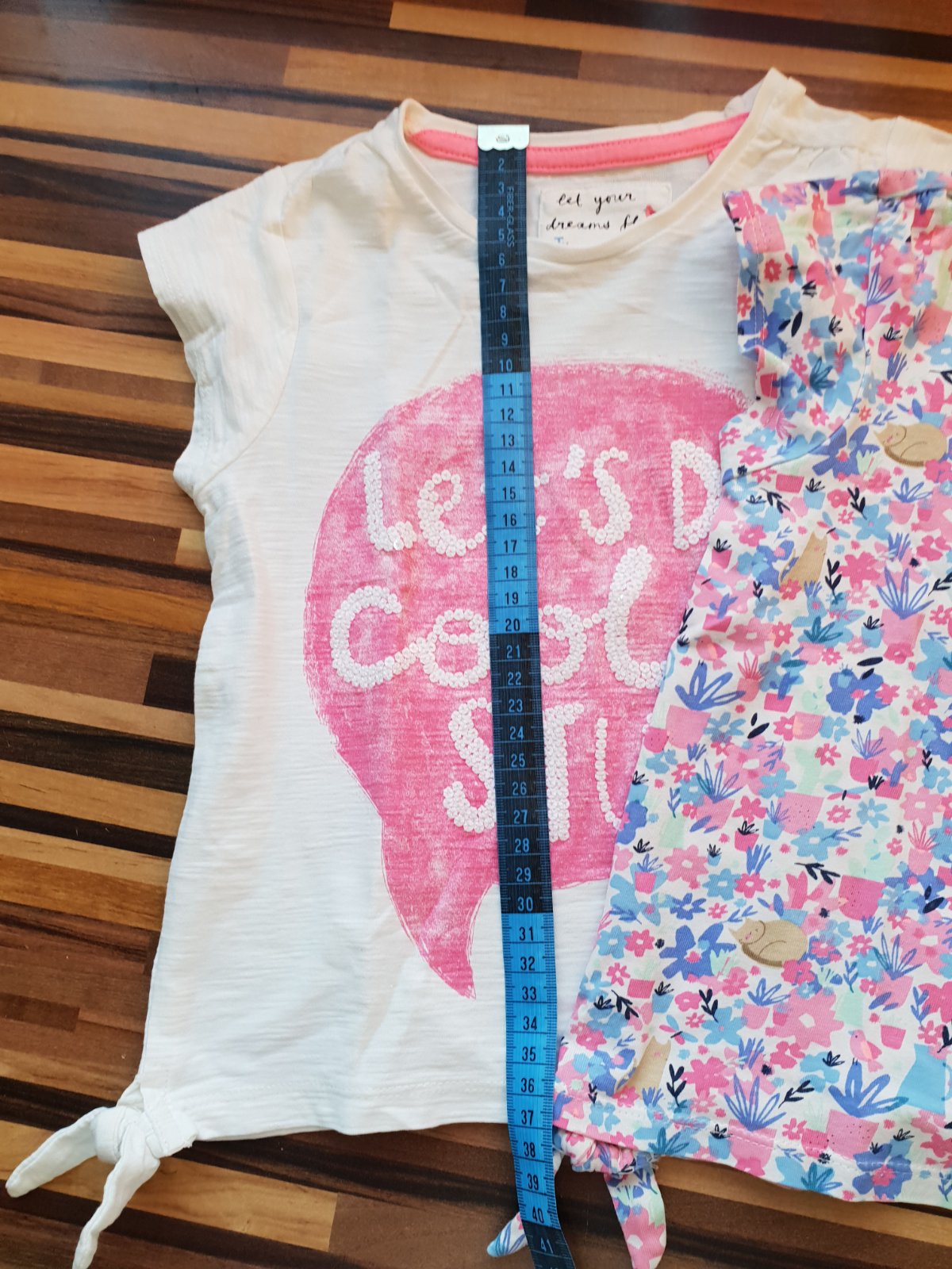 Predám ružové tričko s mačkou, s krátkym rukávom, na spodku 4 cm volán. Zn. TU, veľkosť na 2 - 3 roky, 92 - 98. Šírka pod pažami 30 cm, dĺžka od krku (ramena) vrátane 4 cm volána 43 cm. V nosenom s...