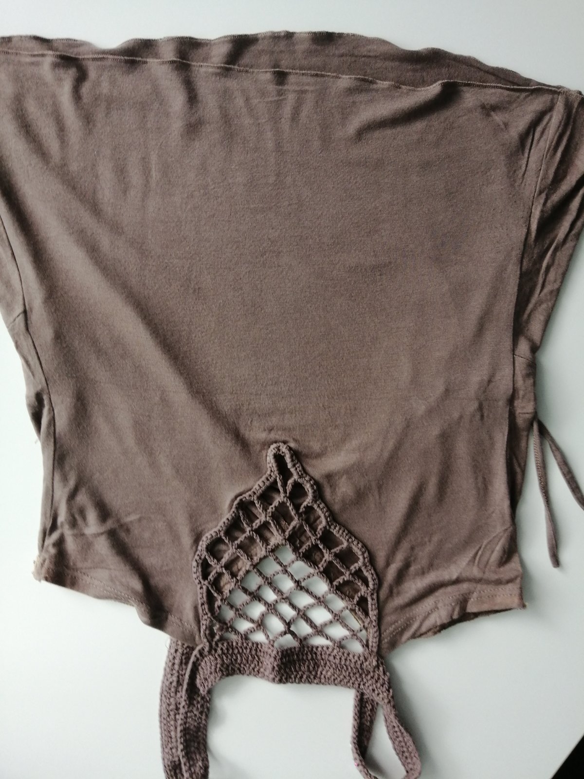 Veľmi príjemné tielko zo 100% bavlny. Elastické, cez prsia 2 x 50 cm (povolí o 2 x 10 cm), dĺžka 61 cm. Hnedo-biely pásik, výborný stav.