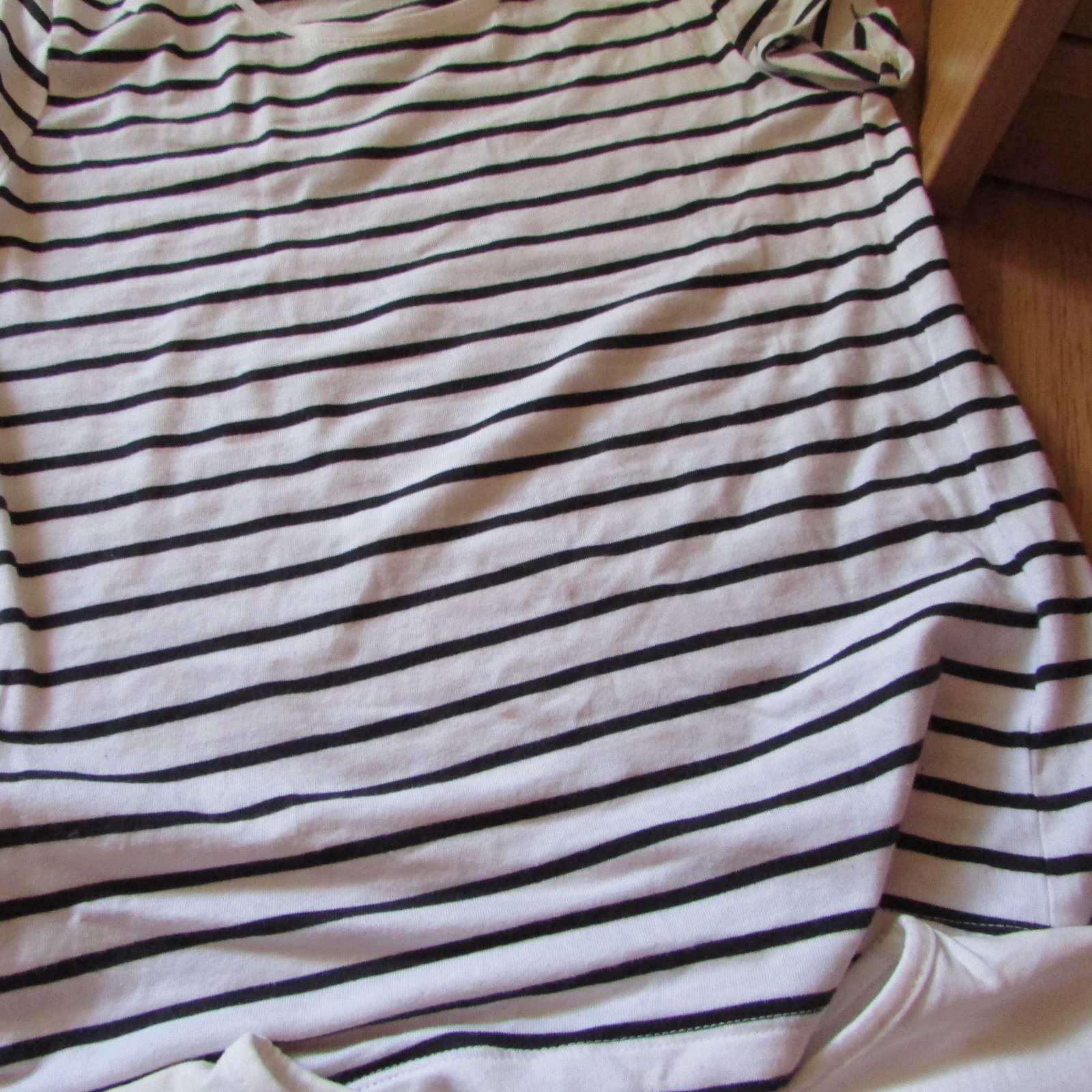 Tričko biele s čiernymi pásikmi, HM, veľkosť 10-12 r, dĺžka: 52 cm, veľmi dobrý nosený stav. Cena: 2 Eur
