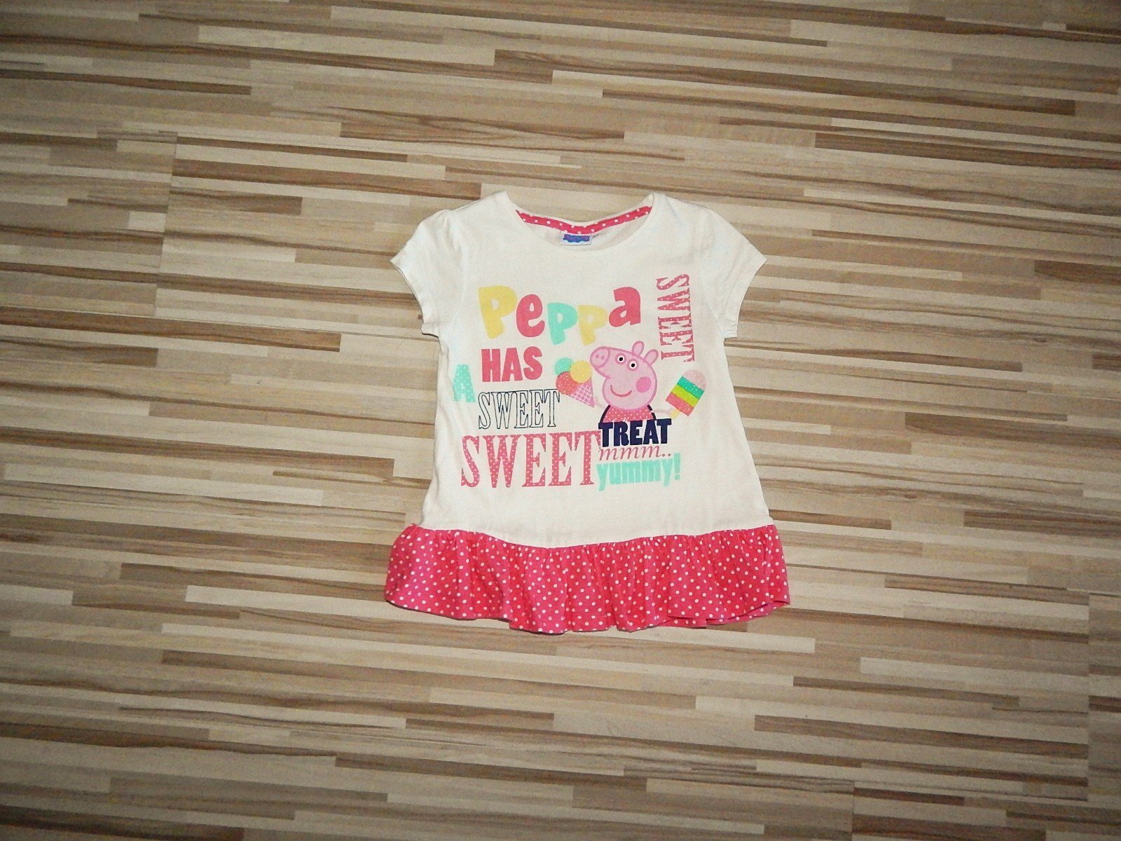 Predám tričko Peppa Pig s volánom, výborný stav, písaná veľkosť 4-5 rokov. Dĺžka 43,5 cm. šírka 31 cm.