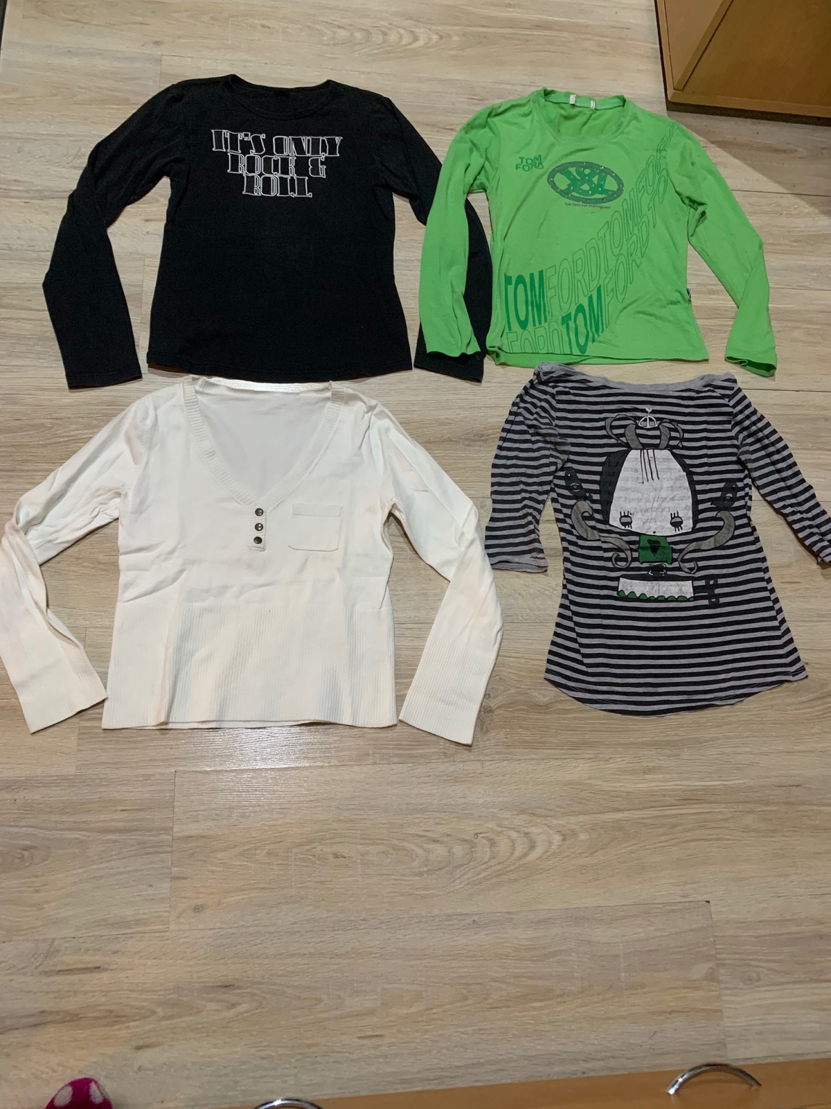 Darujem ku nakupu podľa vlastneho vyberu trika nosene ale ešte posluzia 1 ve dlzka56cm šírka44cm od krku po rukav67cm 2 he má už zmolku a vpredu pidi dierka dĺžka56cm šírka44cm od krku po rukáv 69cm darujem ku dakemu tričku 3 tie dĺžka54cm šírka42cm od krku po ruakv64cm kľudne sa dá nosiť ako tenší svetrik 4 te pod pazuchou trosku zasite ma3/4 rukáve dĺžka55cm sirka39cm od krku po rukav37cm Posta podľa tarify spal skr bie
