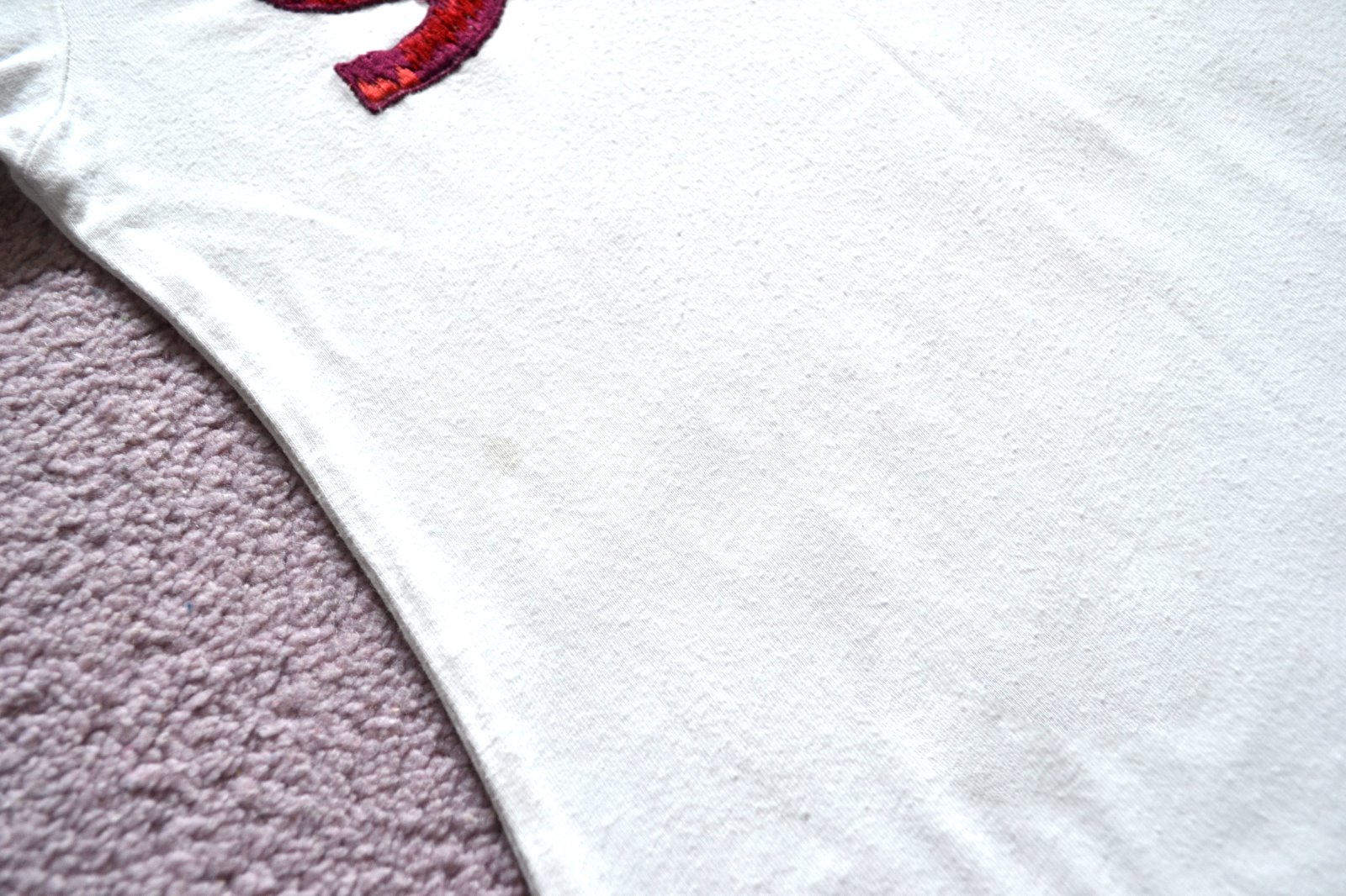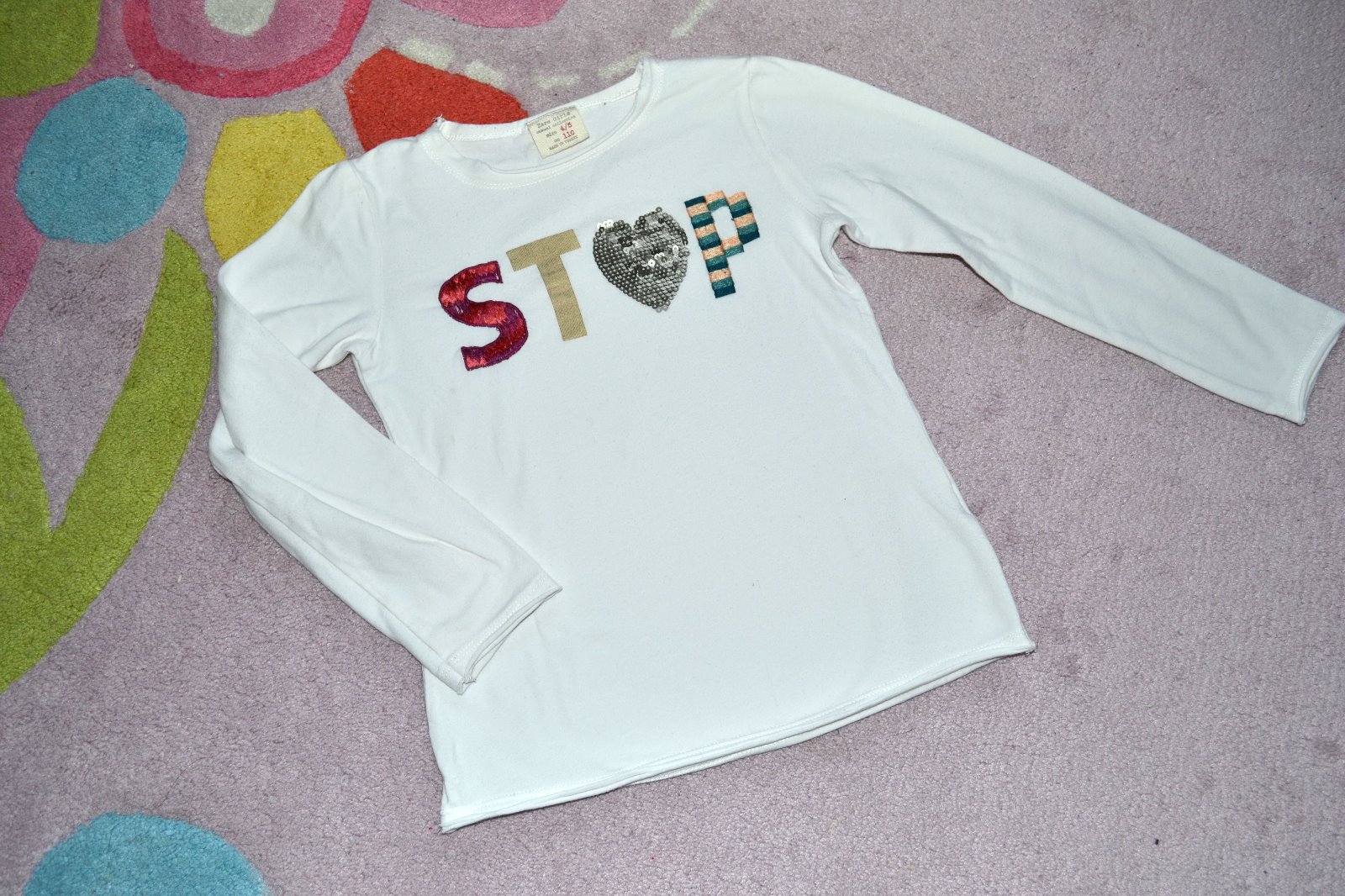 Tričko po dcérke príjemnej bavlny po dcérke. Má jemné fliačiky, ktoré nevidno, viď foto a zohľadnené v cene. Dĺžka chrbta 41cm, dĺžka rukáva od pleca 39cm, vn.dĺžka rukáva 31cm, šírka pod pazuchami 31x2cm. Je výbornej mäkkej poddanej bavlny.