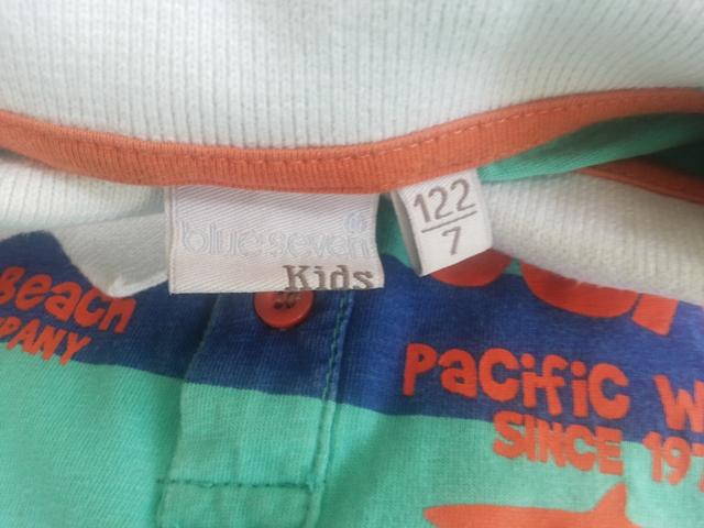 Modrozelene pasikave tricko zn. Blue seven vo velkosti 122, nosene, no v zachovalom stave