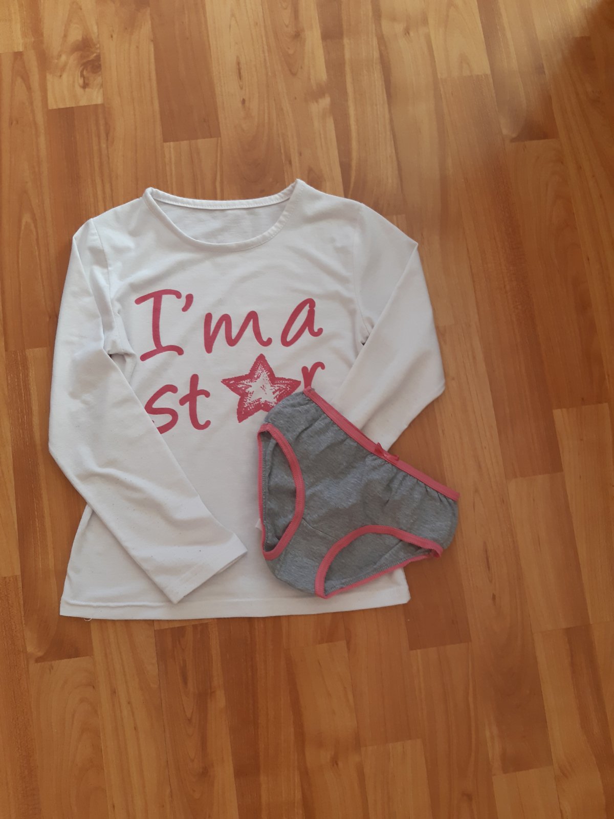 Nosené, no určite ešte poslúži. Veľkosť uvedená odhadom. Gaťky k tomu grátis.