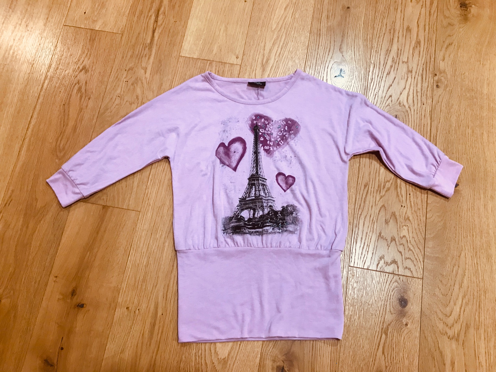 Predám tričko , nosené , bez poškodení . Veľkosť 135/140, 3/4 rukáv , voľnejší strih. Rozmery - dĺžka : 58 cm, rukáv od krku : 45 cm. Cena je 2 € + poštovné .