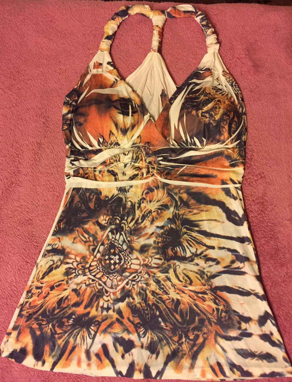 Ako nove, pekne sedi, elasticke, je vystuzene v okoli prs. Dlzka od ramienka: 63 cm, sirka v pase: 33cm, sirka dolnej casti: 47cm