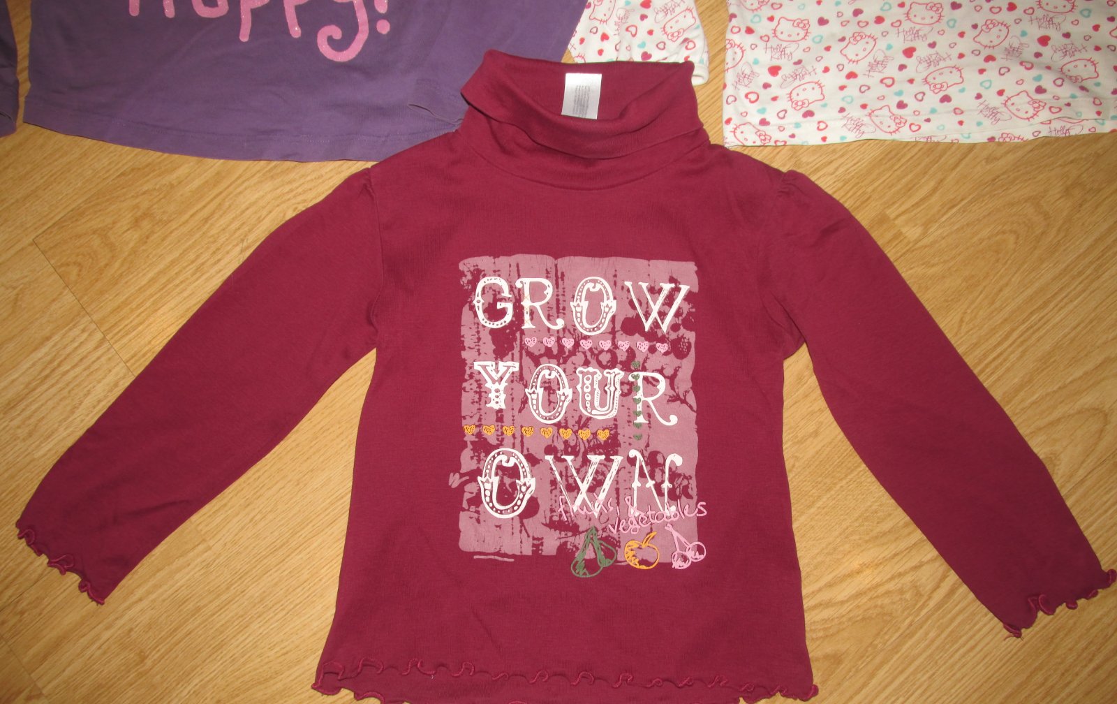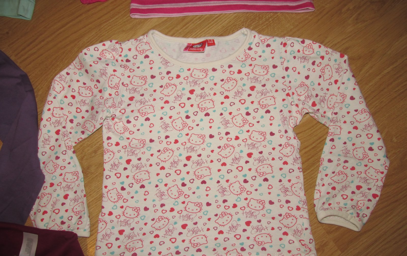 ---------biele tričko s Kittynkami,v. 116, výborný stav, cena 2 eurá,zn. Hello Kitty-----dole roláčik,zn. Palomino, v.116, výborný stav, cena 2,00