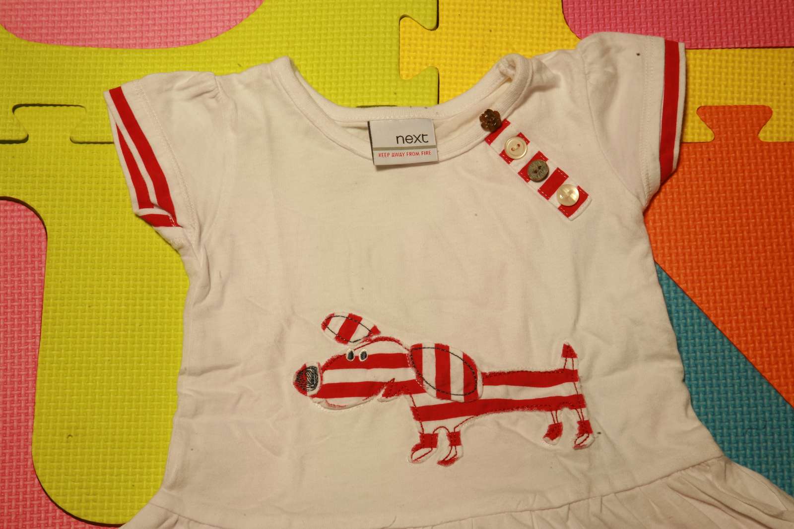 Next velkosť 3-6 mes , šatkové tričko, super na leto, rozmery: širka v prsiach je 24 cm a dlžka je 35 cm ( možnosť osobneho odberu z Letanoviec)
