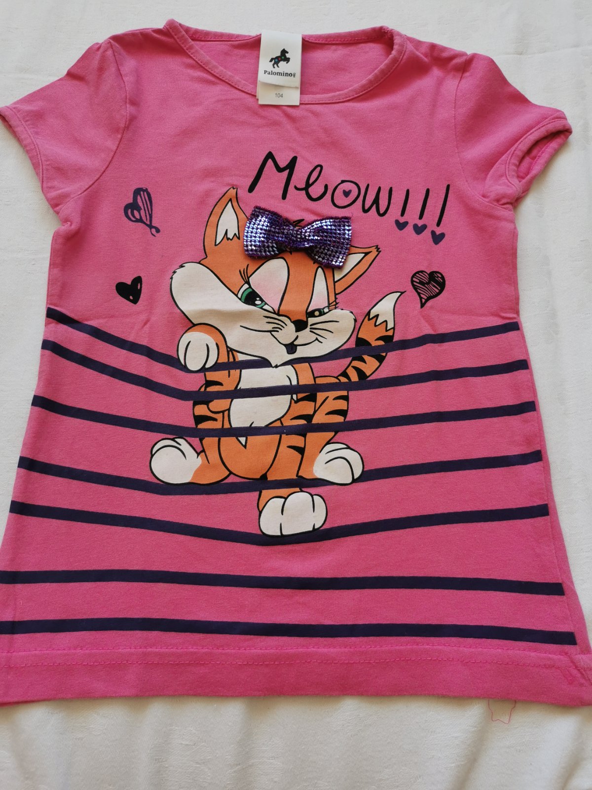 Predám tričko, veľ. 104, dĺžka 40 cm, pod rukávmi šírka 27 cm. Zloženie: 100 % bavlna, . Nepoškodené, nežmolkové. Cena 2 € + poštovné resp. osobný odber.