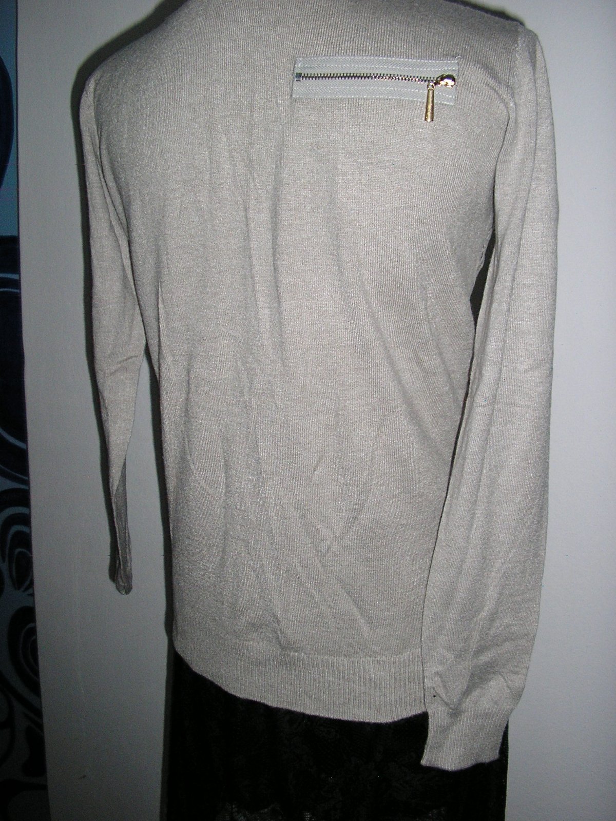 Top - drapový so zapínaním na malé gombíky. Predná časť je z elastickej čipky, na spodku zakončený vyšitou krajkou. Zadnú časť zdobí nevšedne prišitý zips. Okrúhly výstrih