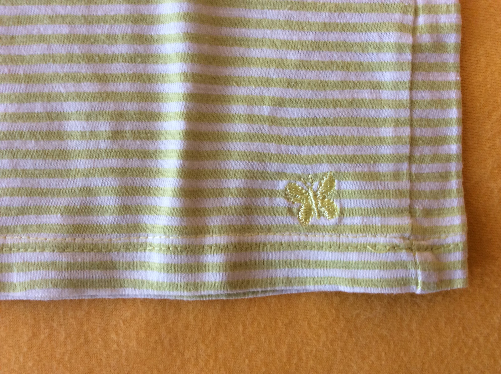 Nosené krátko, super stav bez akéhokoľvek poškodenia, veľmi pekné, s výšivkou motýlika na boku, uvedená veľkosť č. 116, ale zodpovedá veľkosti č. 110.
