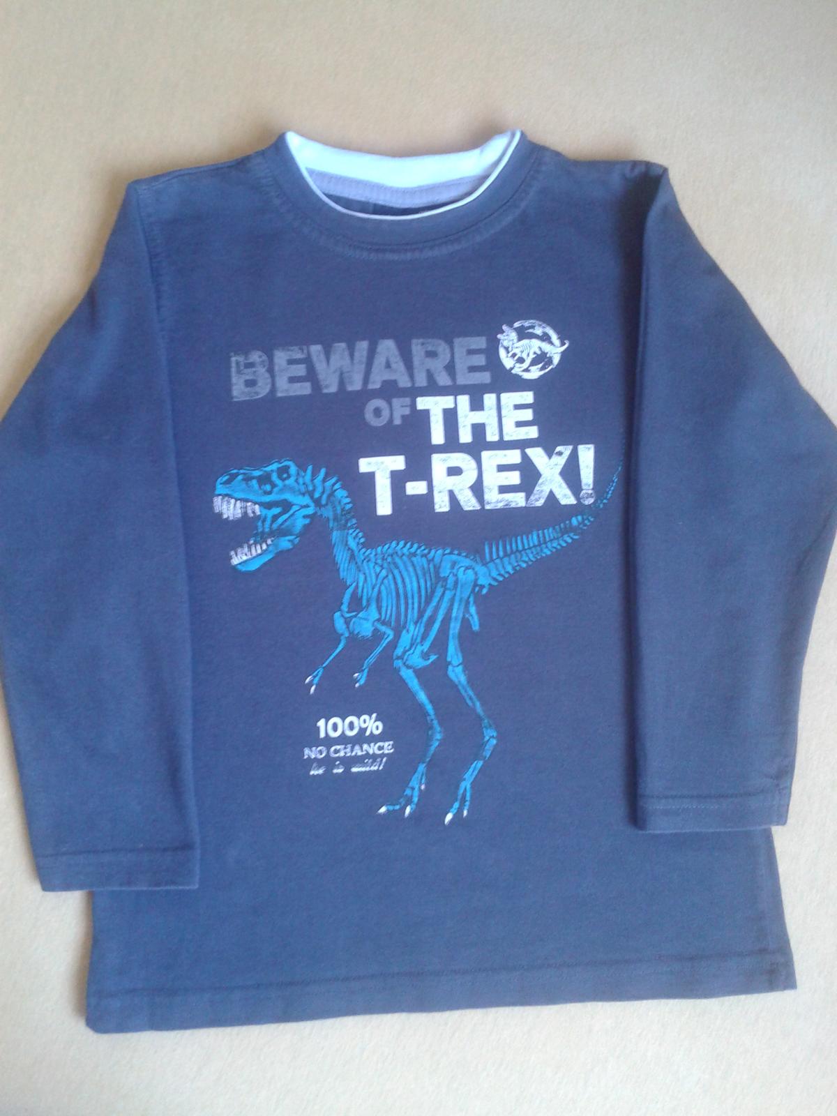 Máličko nosené tričká vo top stave. Na tričku s T-REXom je na okraji rukáva zašitá drobná dieročka, čo som si pri kúpe nevšimla, viď foto. Inak to ani nevidno :) Sú to čísla 110 a 116 , ale sú medzi nimi len malé rozdiely vo veľkosti. Sú to miery rukáv od krku 44 - 47, š. 34 - 36, d. 44 - 46 cm. Ak chcete jednotlivo, ešte dám presné miery.