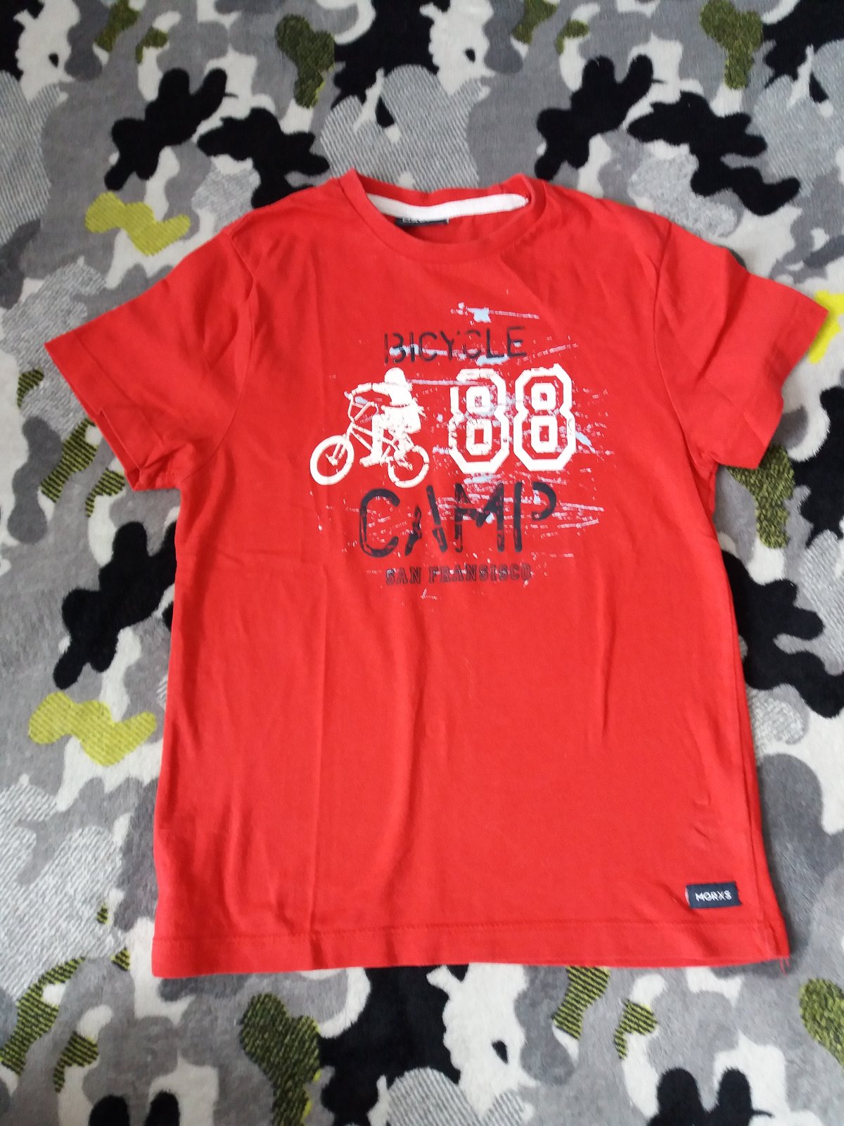 Pekné, málo nosené bavlnené tričko s bicyklistom.Veľ.122/128.Dĺ.48cm, š.34cm.