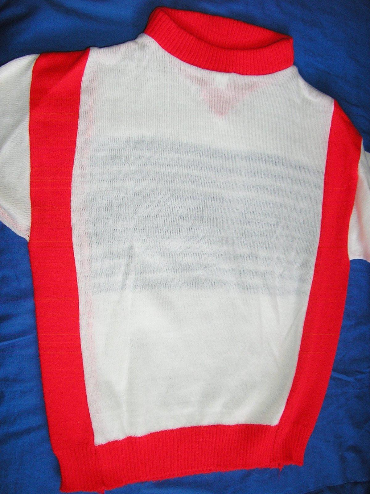 Zákl. farba: biela + červená, tm. modrá. Elegantný pulóvrik. Mäkký a veľmi príjemný materiál. Ruk. dlhé. Pulóver je v dobrom stave, vypratý, bez fľaku a poškodení.