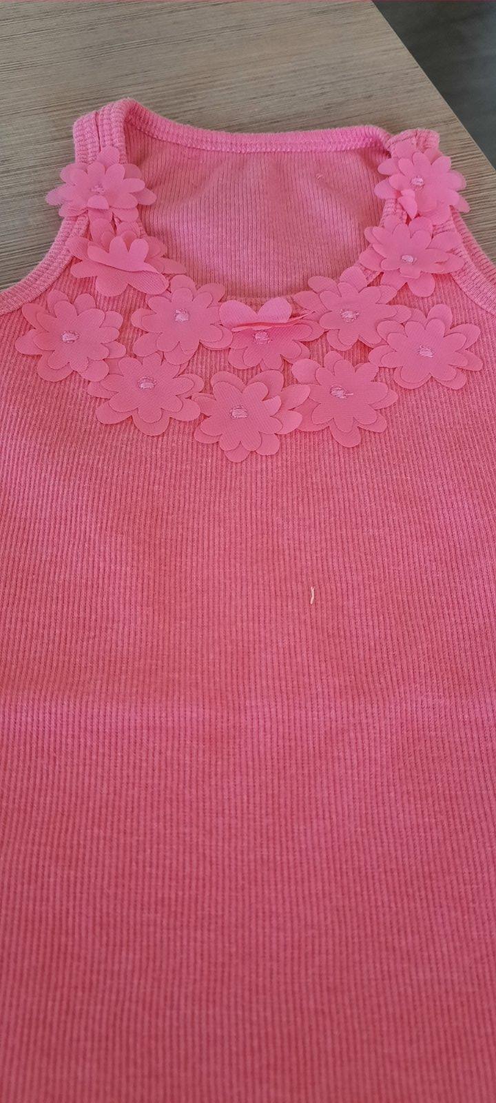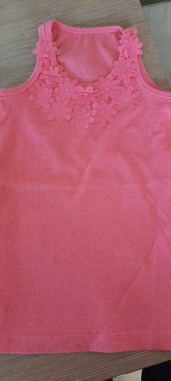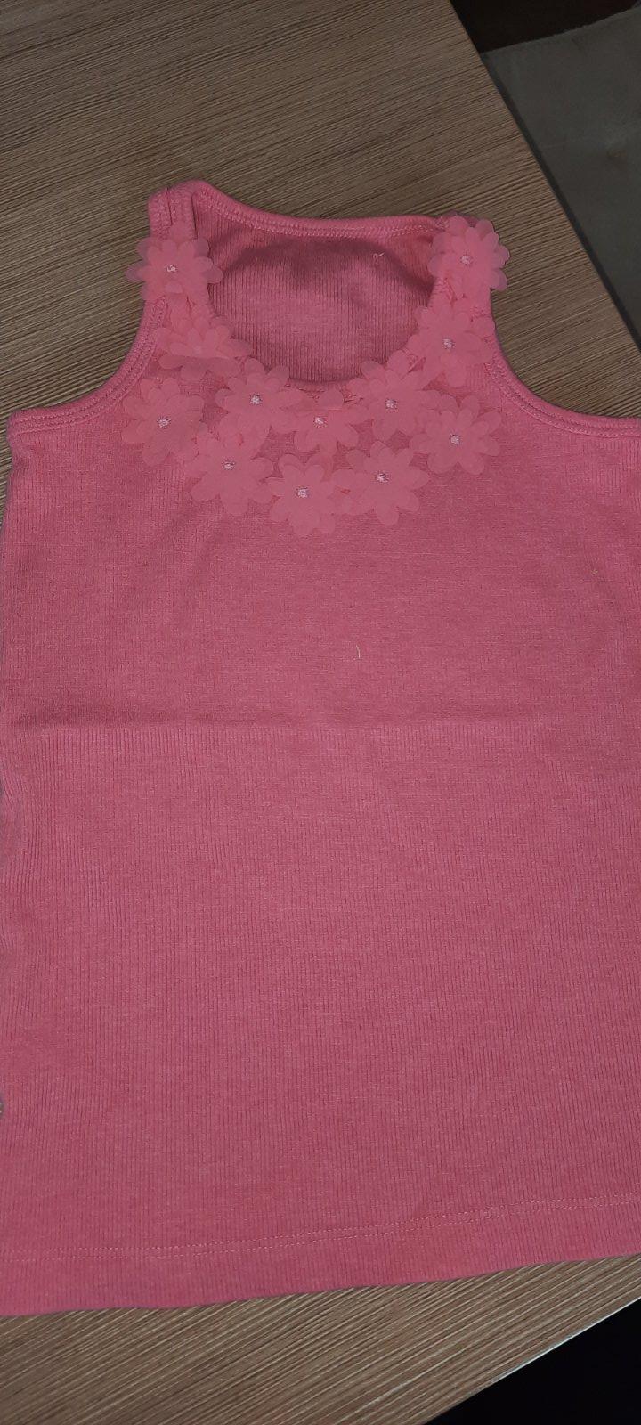Tmavoružové bavlnené tričko, bez rukávov, so srdiečkami. Veľkosť: 122/128.
