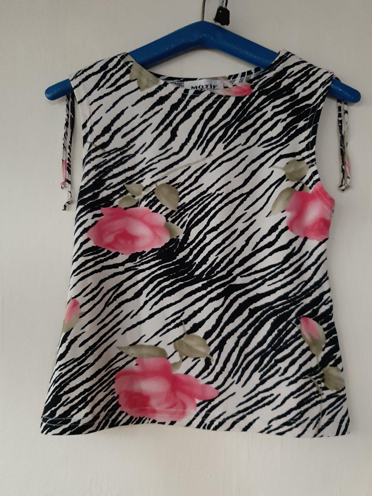 Dámske tričko v zachovalom stave, nemá žiadne poškodenia. Na etikete veľkosť uvedená nie je.