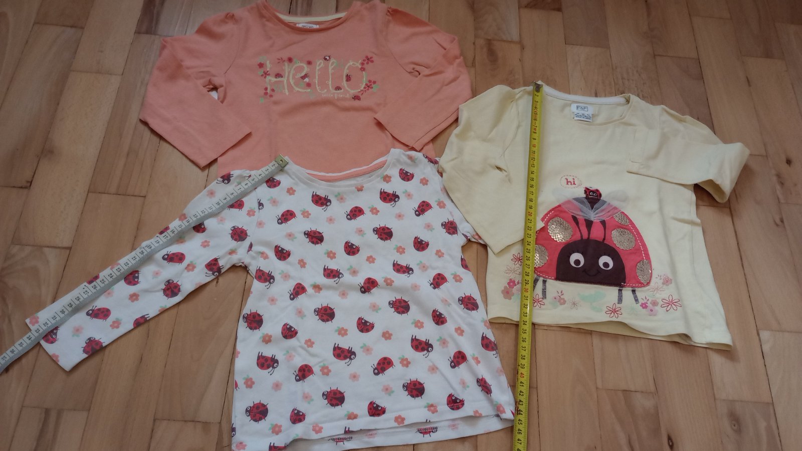 Predam 3 mile tricka pre dievcatko. Boli dost nosene, este na doma ci ihrisko urcite posluzia. Maju zmolky a na farbe vidiet pranie. Na zltom aj bielom su asi 2 mikrobodky - vsimla som si pri foteni, takmer nevidno (zrejme sa casom vyperu, vznikaju mi v pracke, netusim z coho). Inak bez dier. Cena spolu.